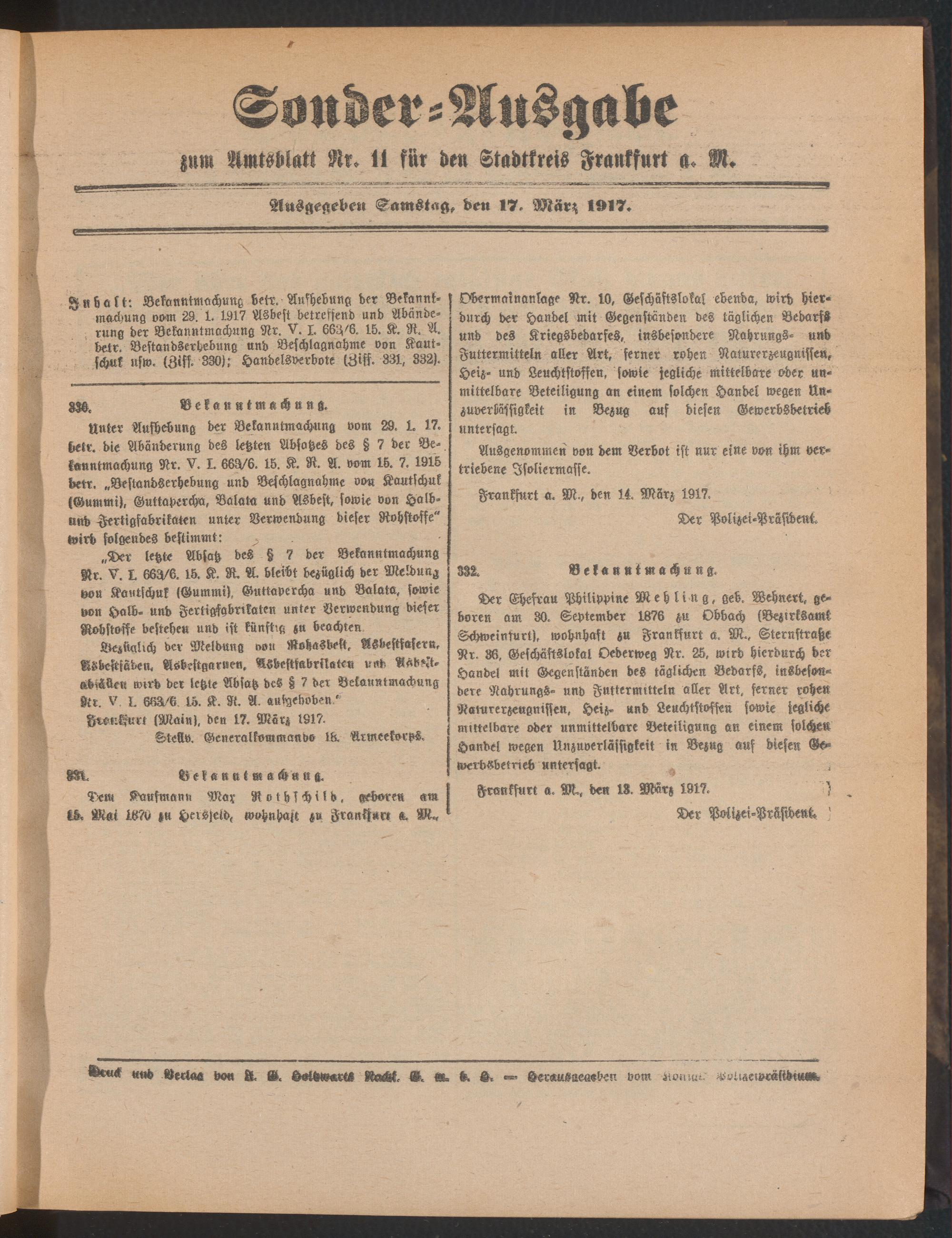 Amtsblatt für den Stadtkreis Frankfurt a.M.....