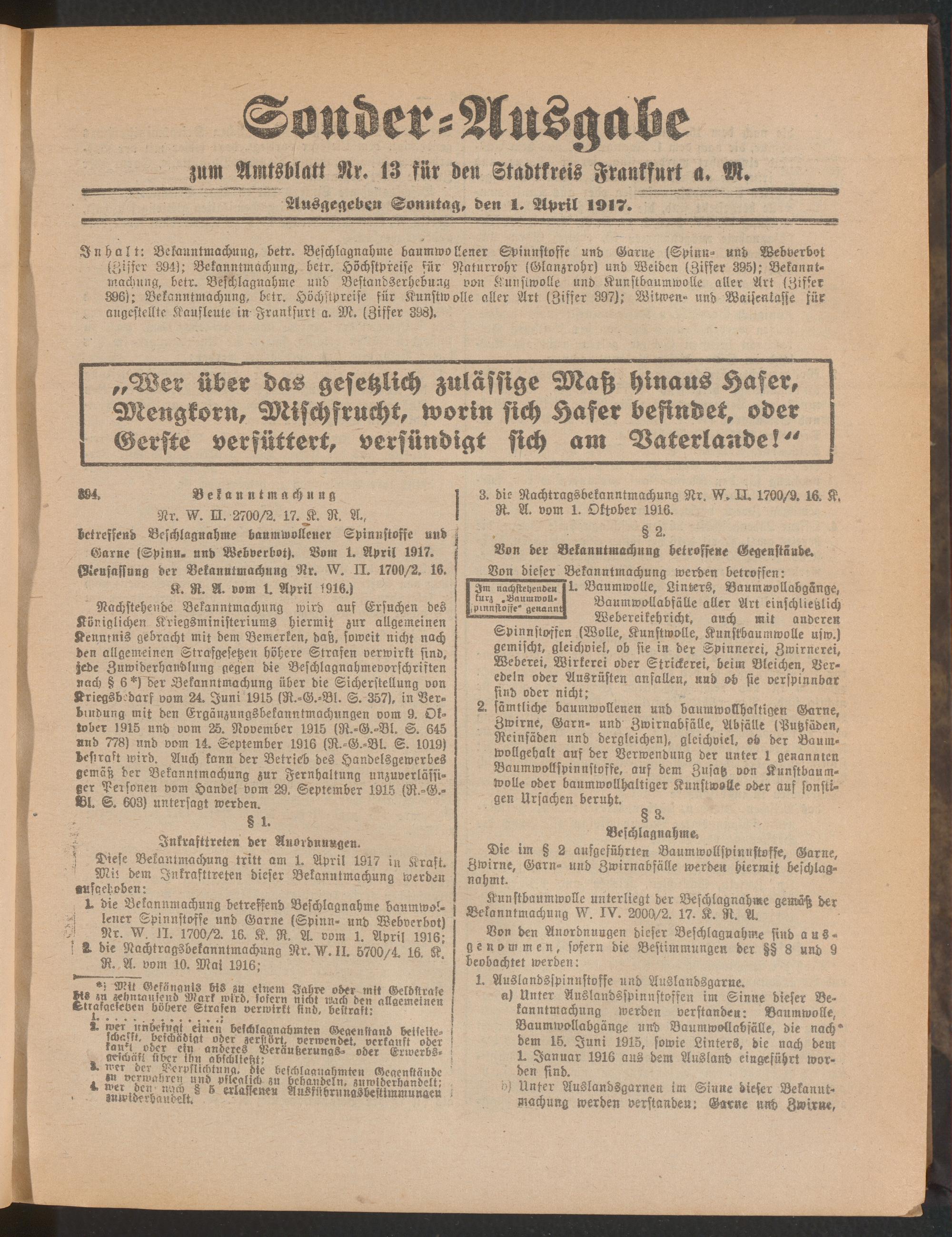 01.04.1917= Sonder-Ausgabe zu Nr. 13