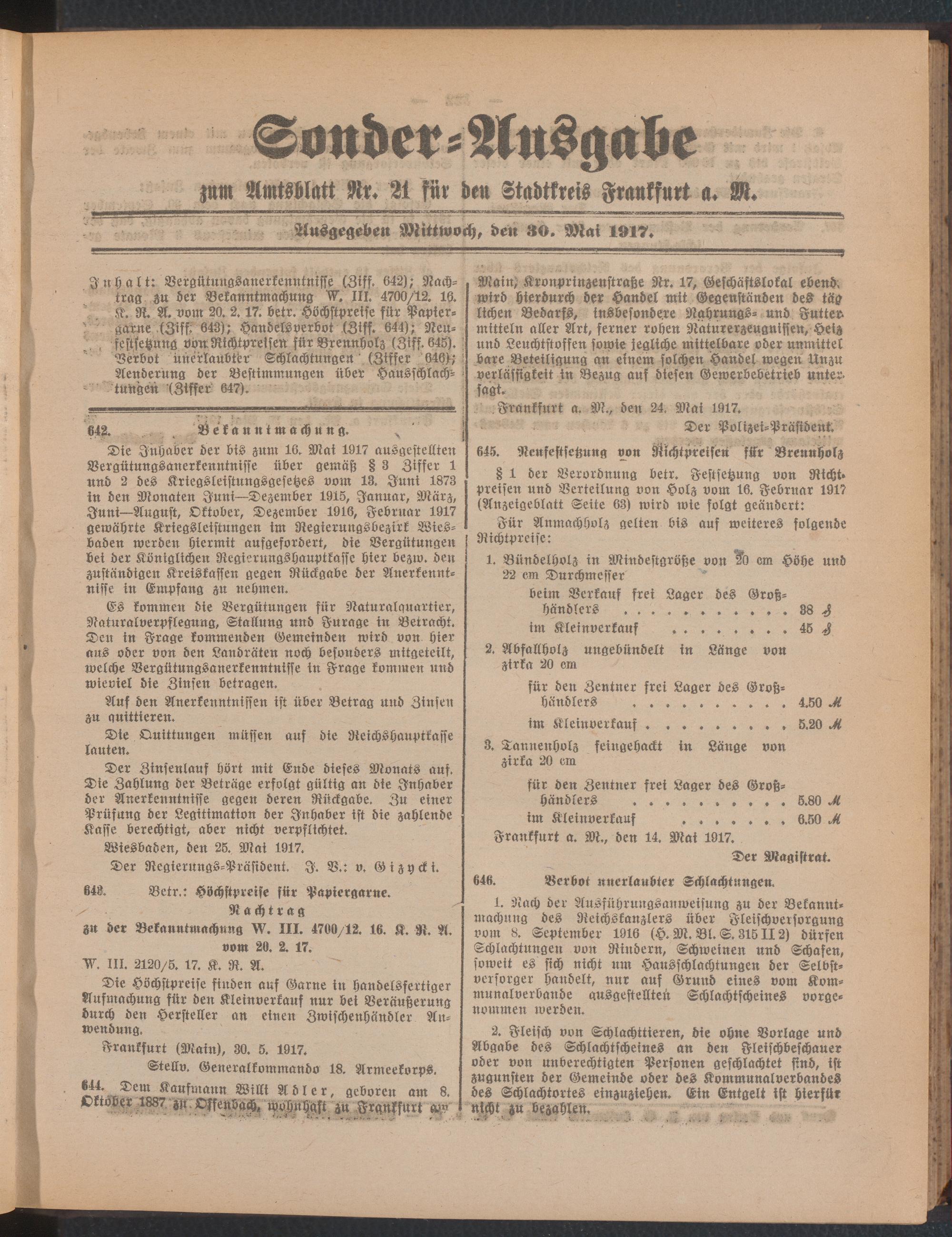 30.05.1917= Sonder-Ausgabe zu Nr. 21