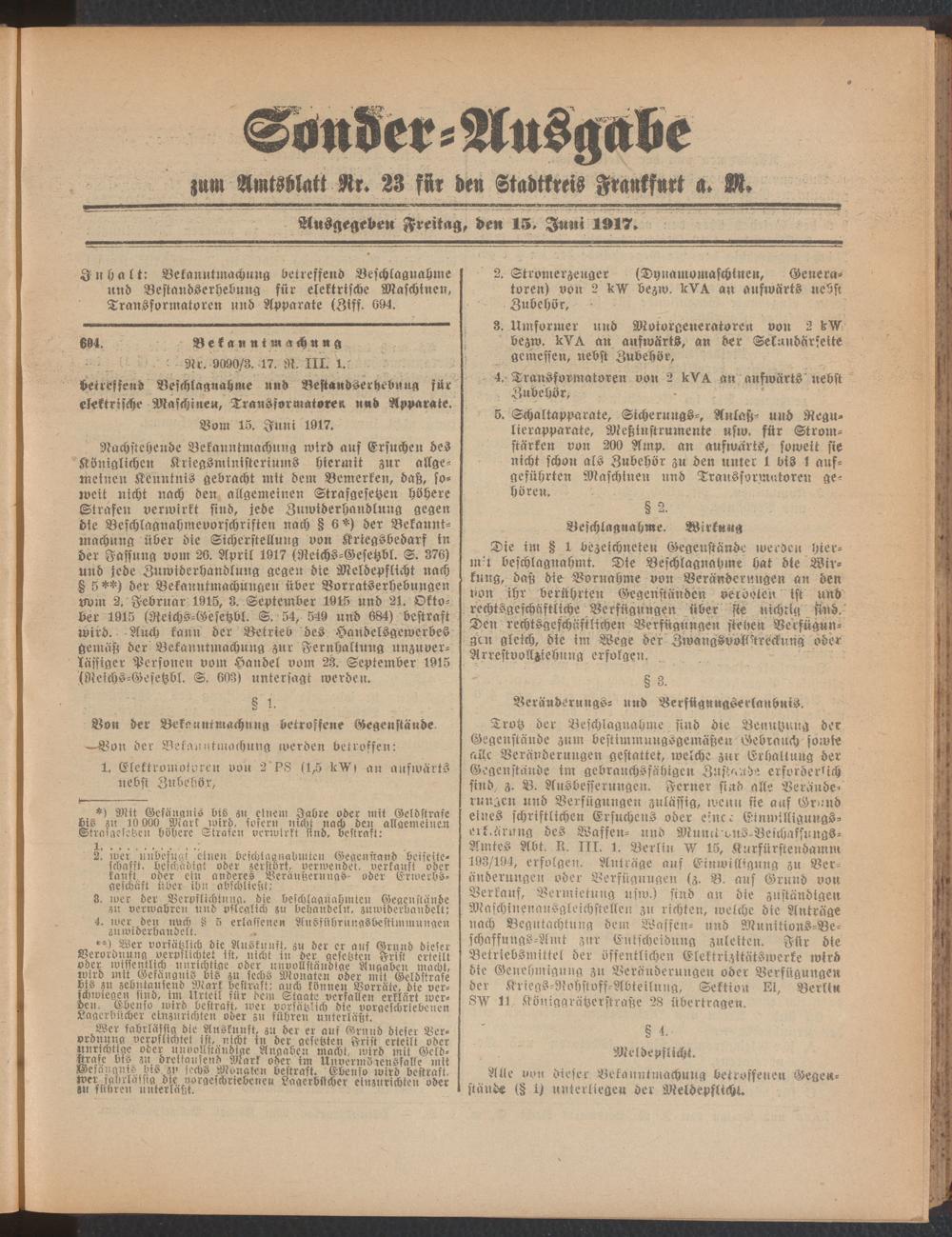 15.06.1917 = Sonder-Ausgabe zu Nr. 23