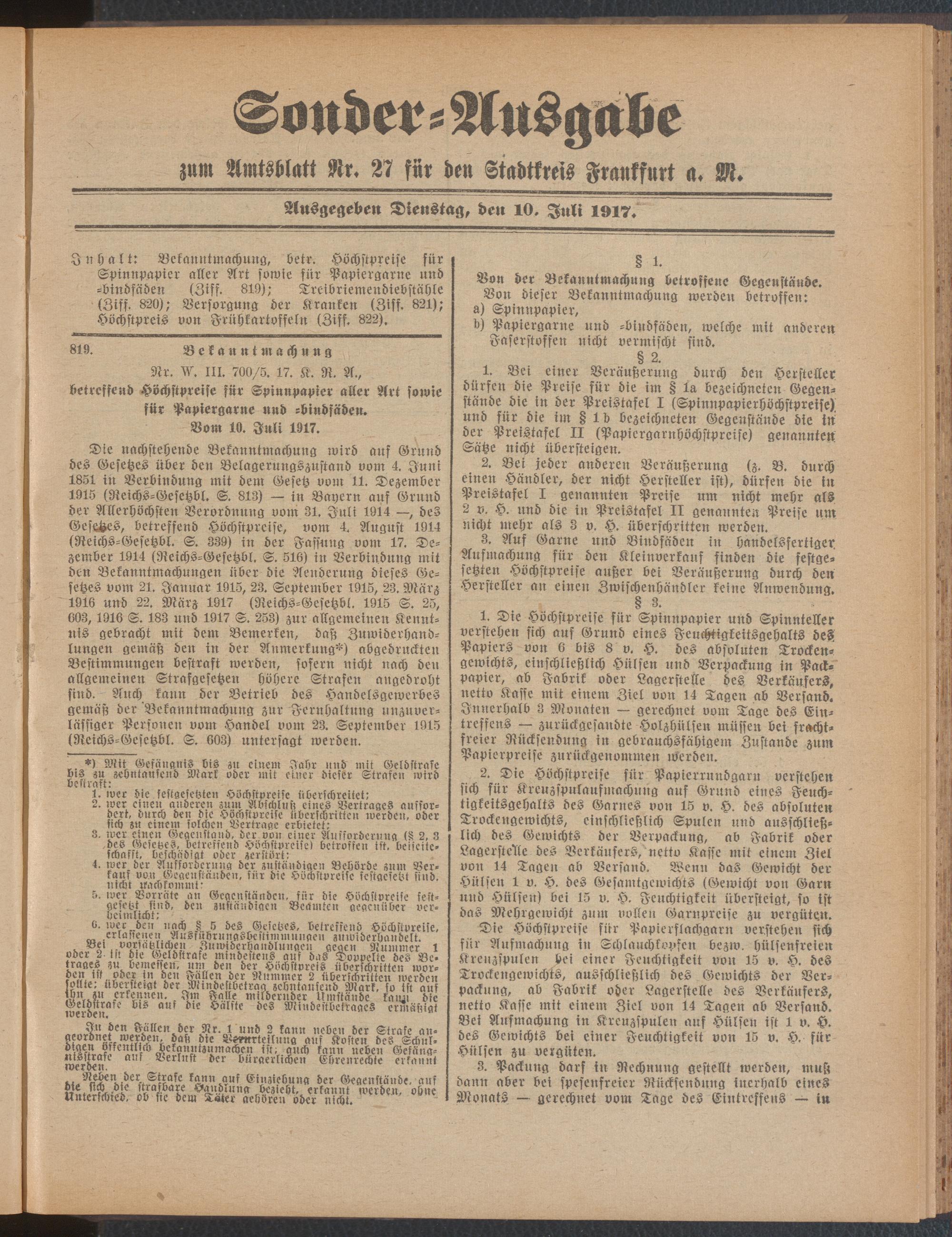 10.07.1917 = Sonder-Ausgabe zu Nr. 27