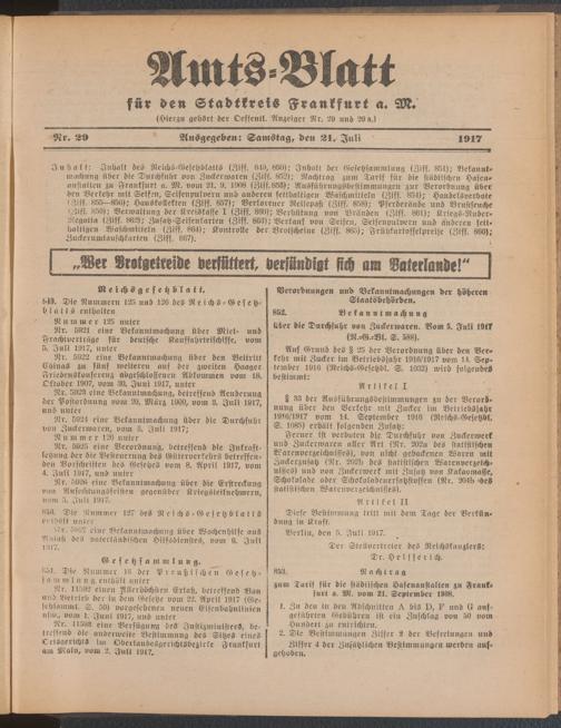 Amtsblatt für den Stadtkreis Frankfurt a.M.....