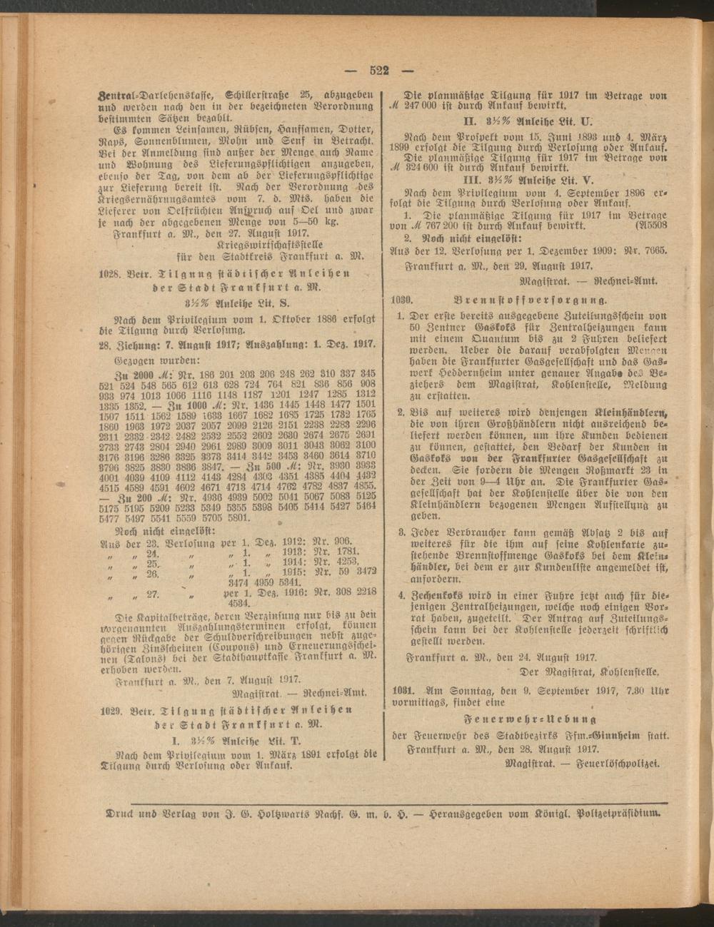 Amtsblatt für den Stadtkreis Frankfurt a.M.. 1828-1918