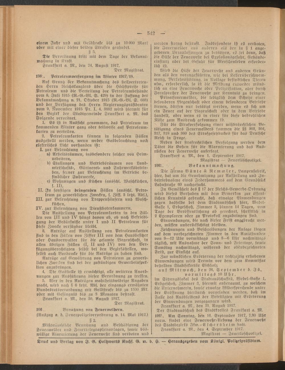 Amtsblatt für den Stadtkreis Frankfurt a.M.. 1828-1918