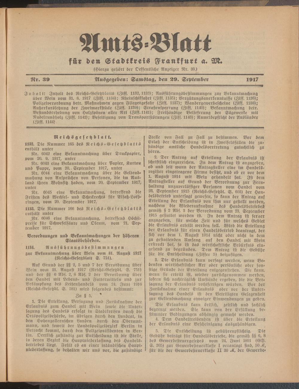 Amtsblatt für den Stadtkreis Frankfurt a.M.....
