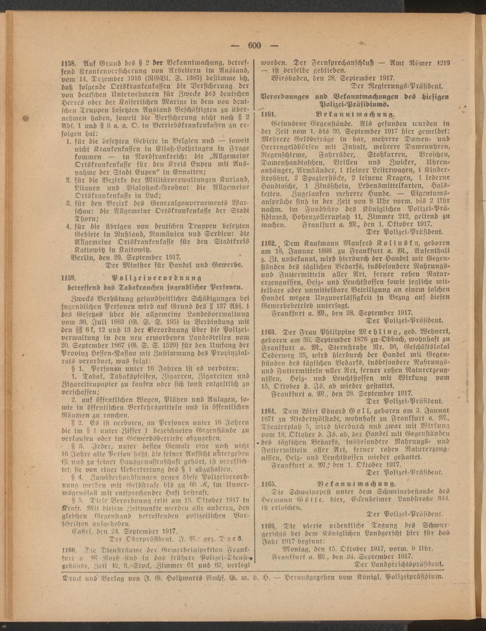 Amtsblatt für den Stadtkreis Frankfurt a.M.. 1828-1918