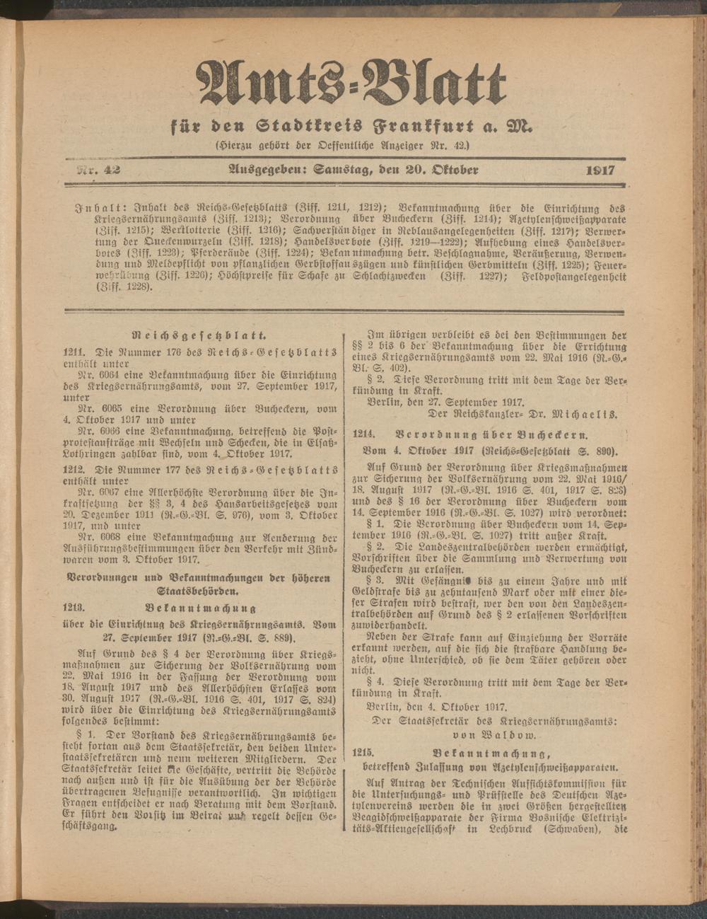 Amtsblatt für den Stadtkreis Frankfurt a.M.....