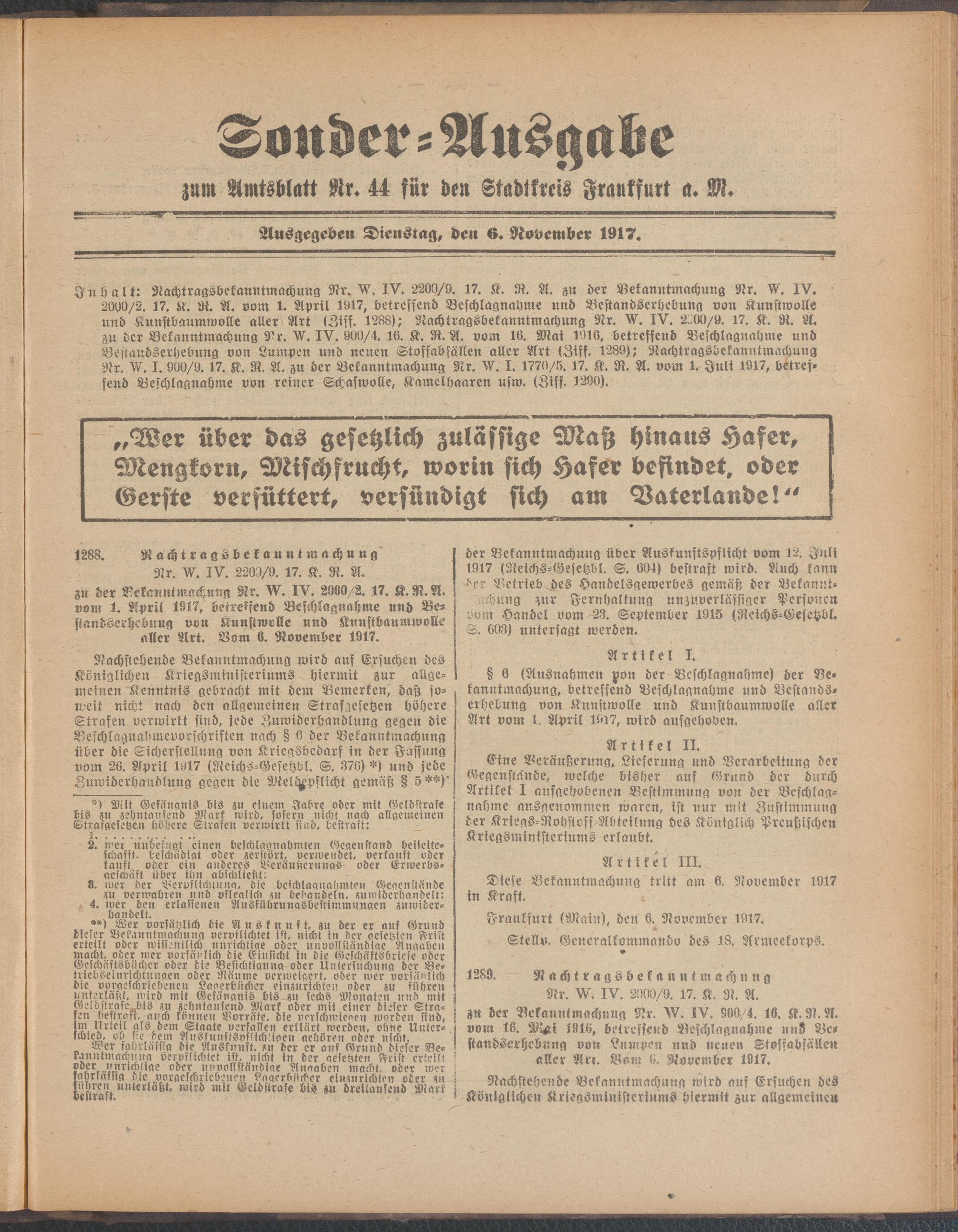 06.11.1917 = Sonder-Ausgabe zu Nr. 44