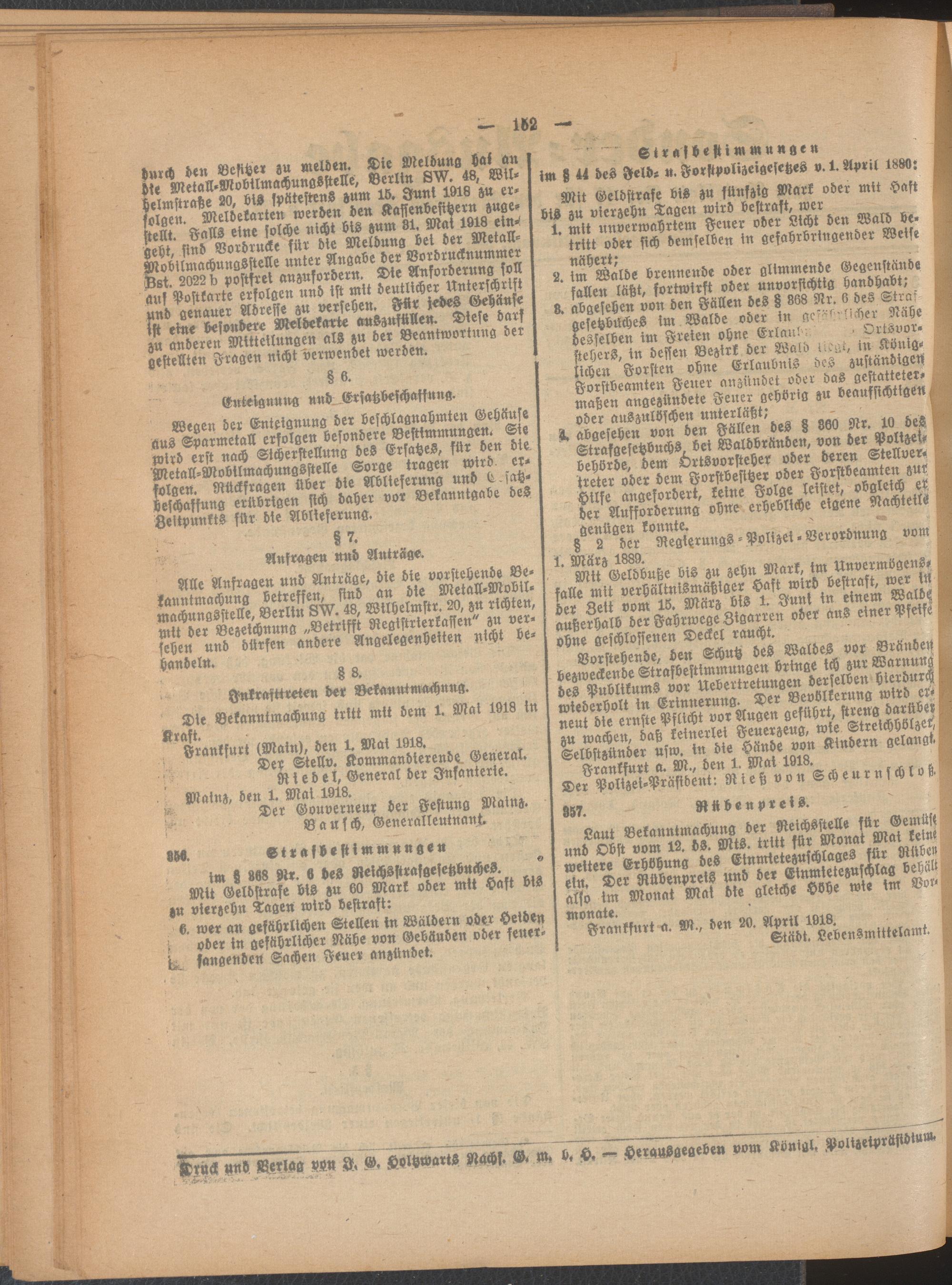 Amtsblatt für den Stadtkreis Frankfurt a.M.. 1828-1918
