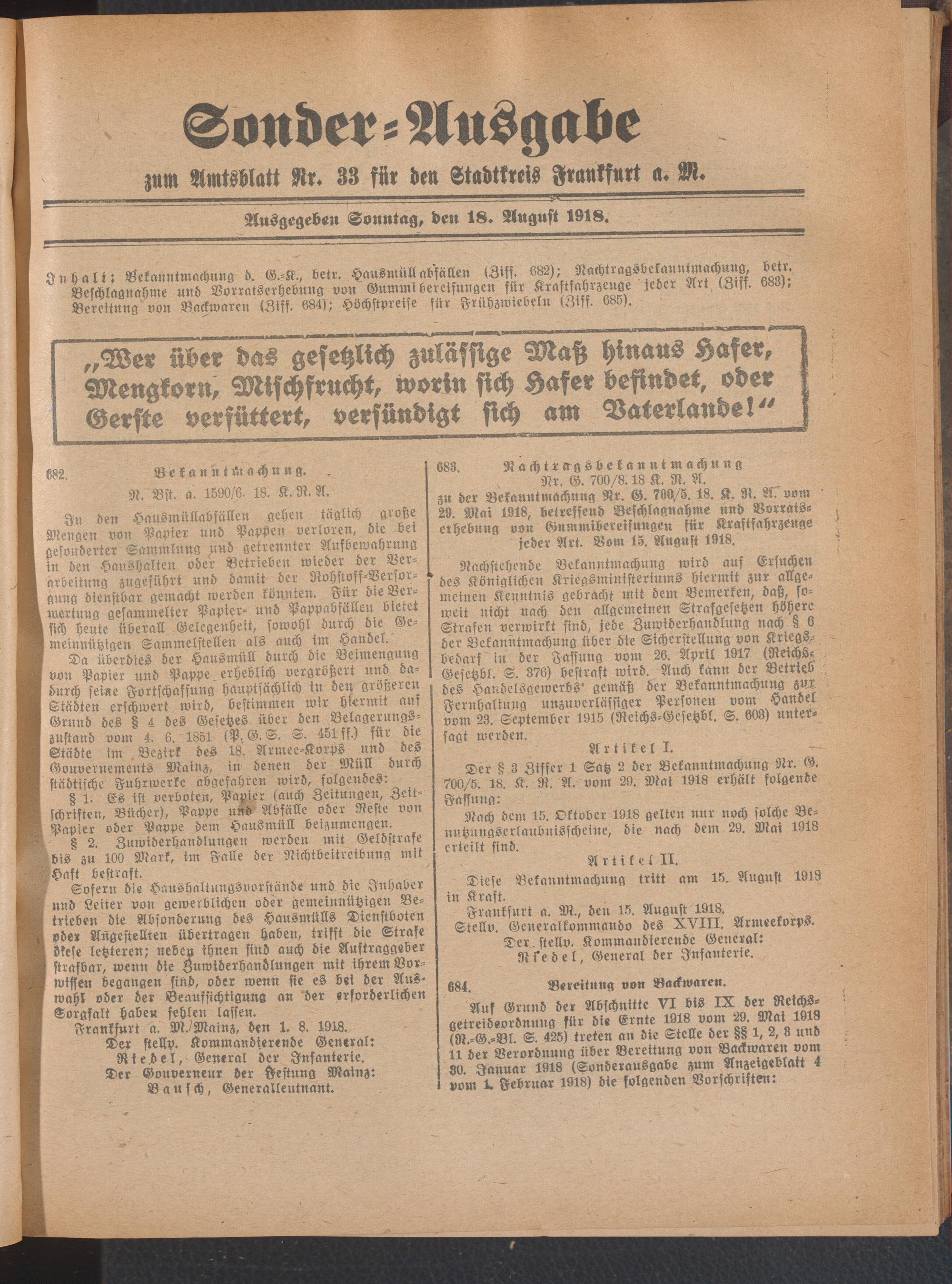 18.08.1918 = Sonder-Ausgabe zu Nr. 33