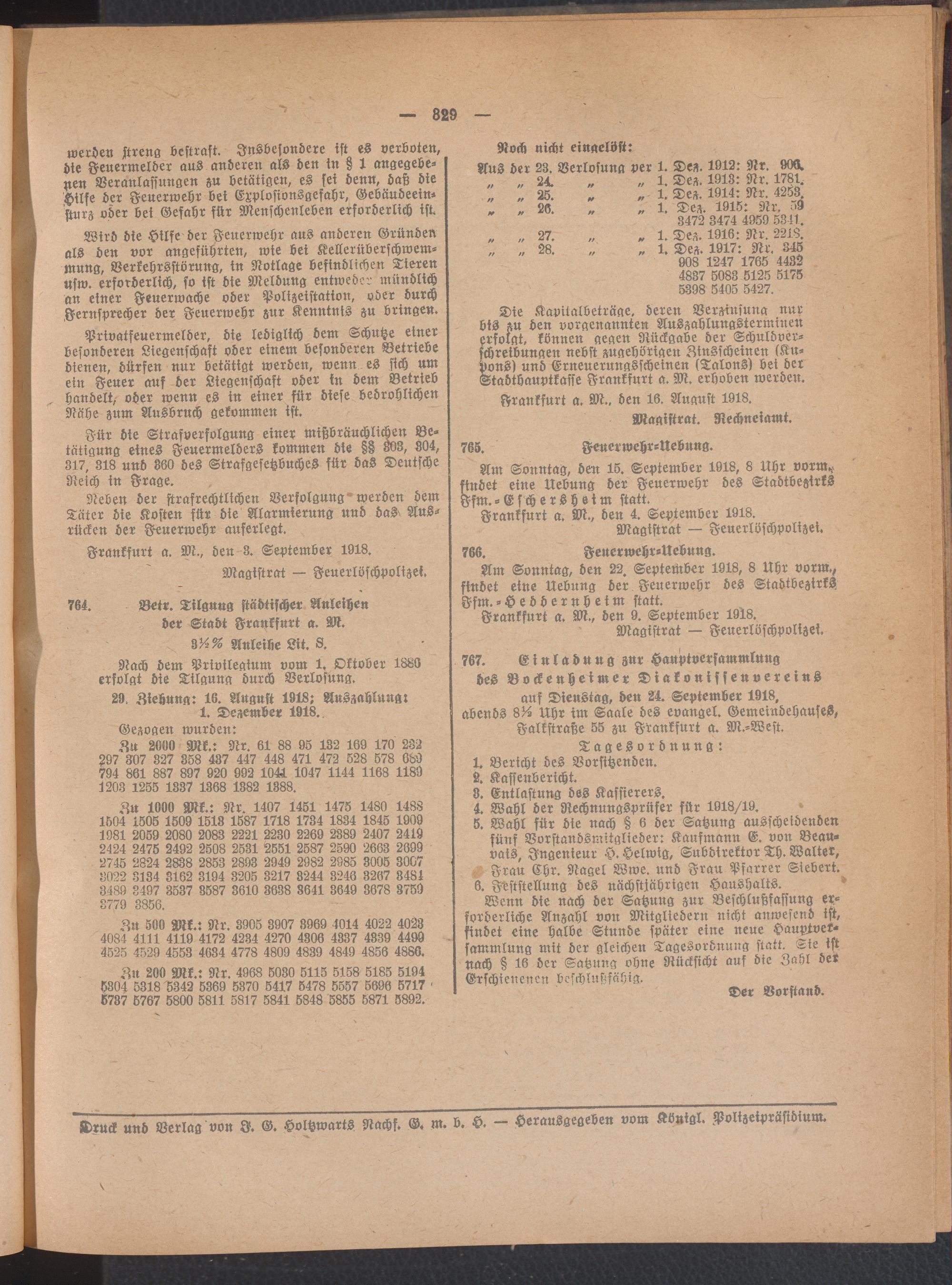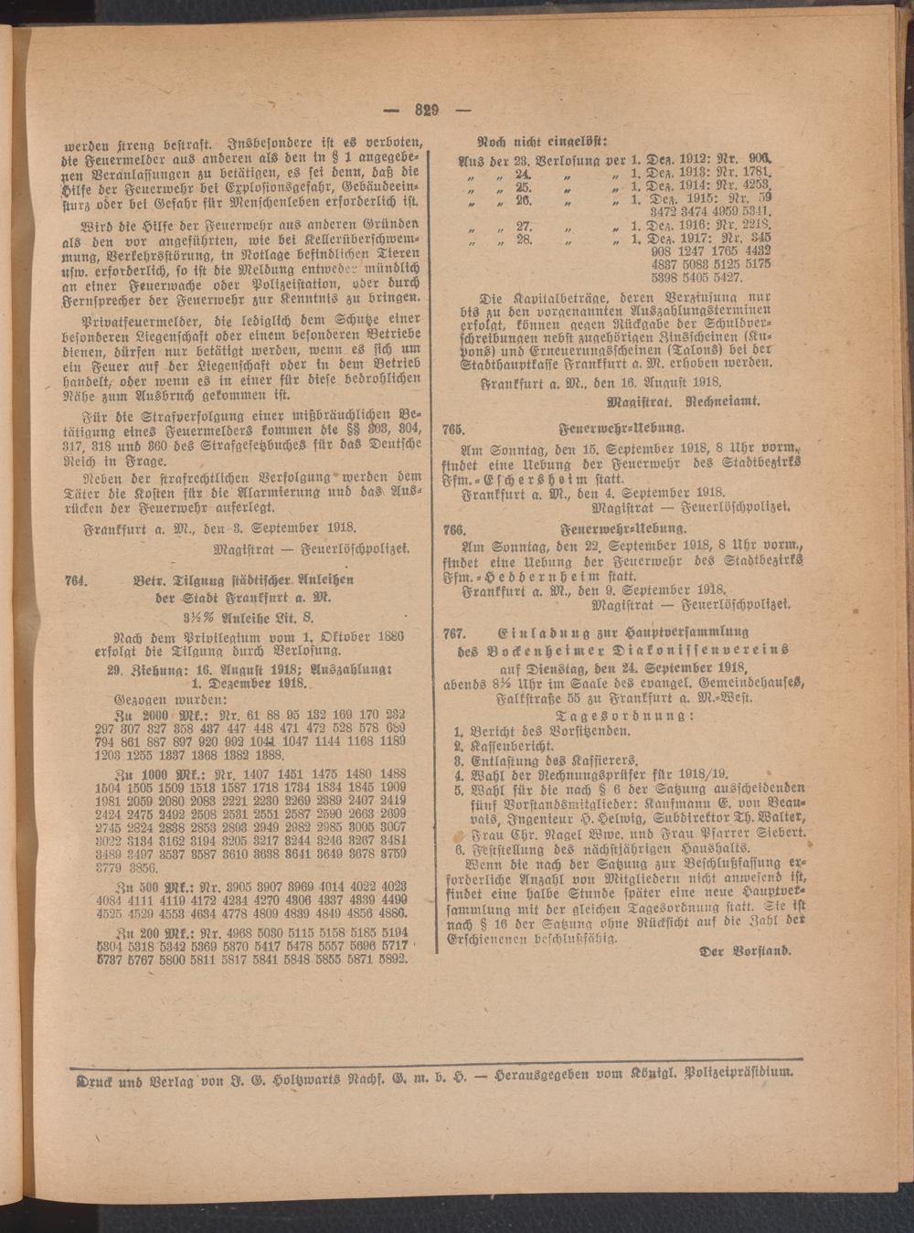 Amtsblatt für den Stadtkreis Frankfurt a.M.. 1828-1918