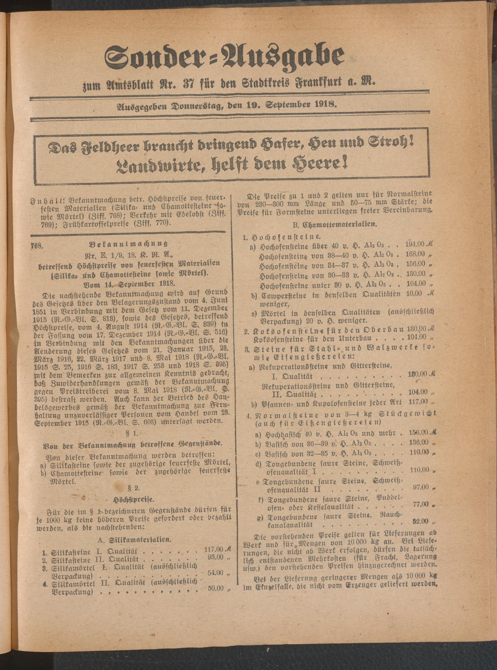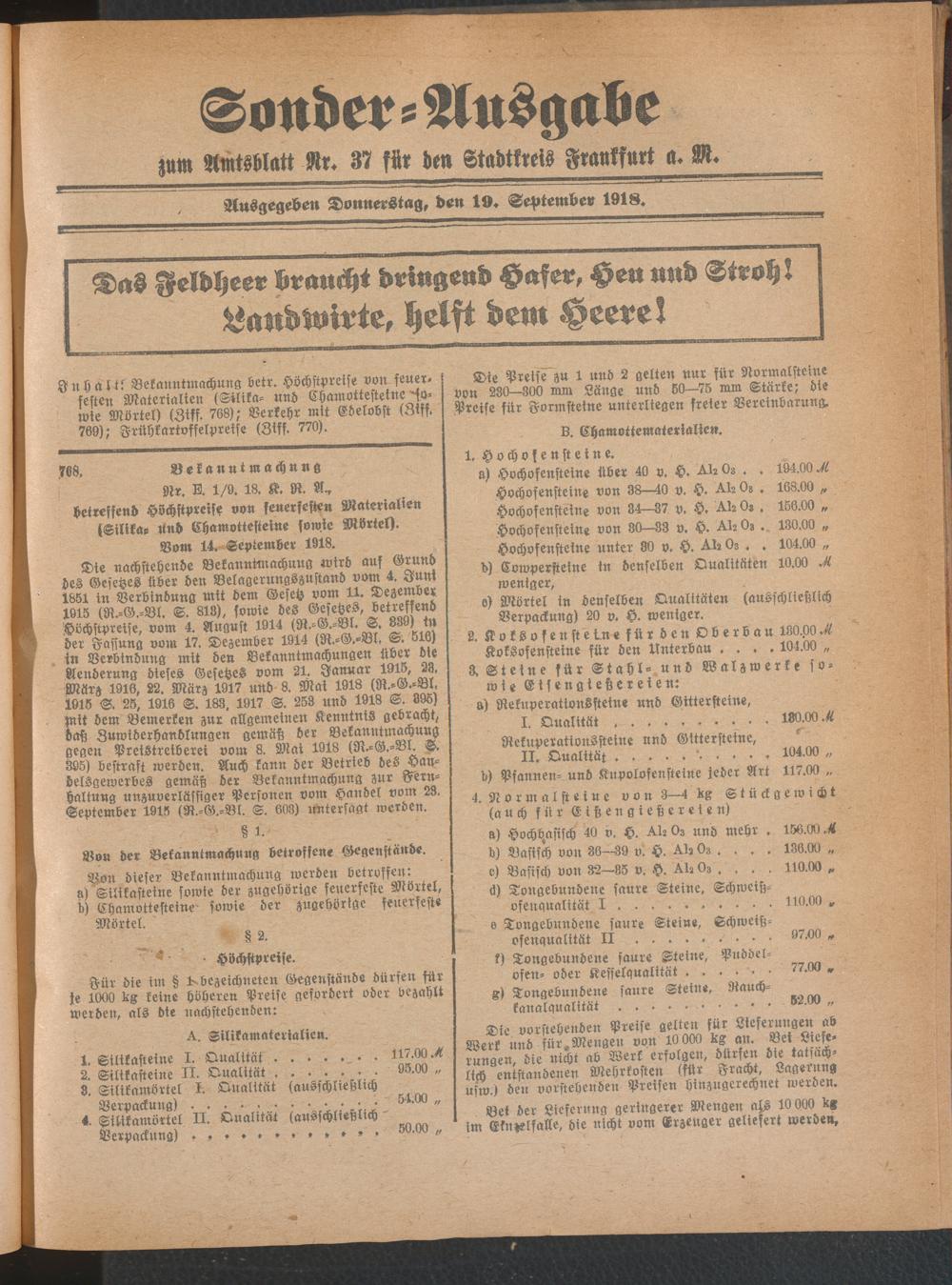 19.09.1918 = Sonder-Ausgabe zu Nr. 37
