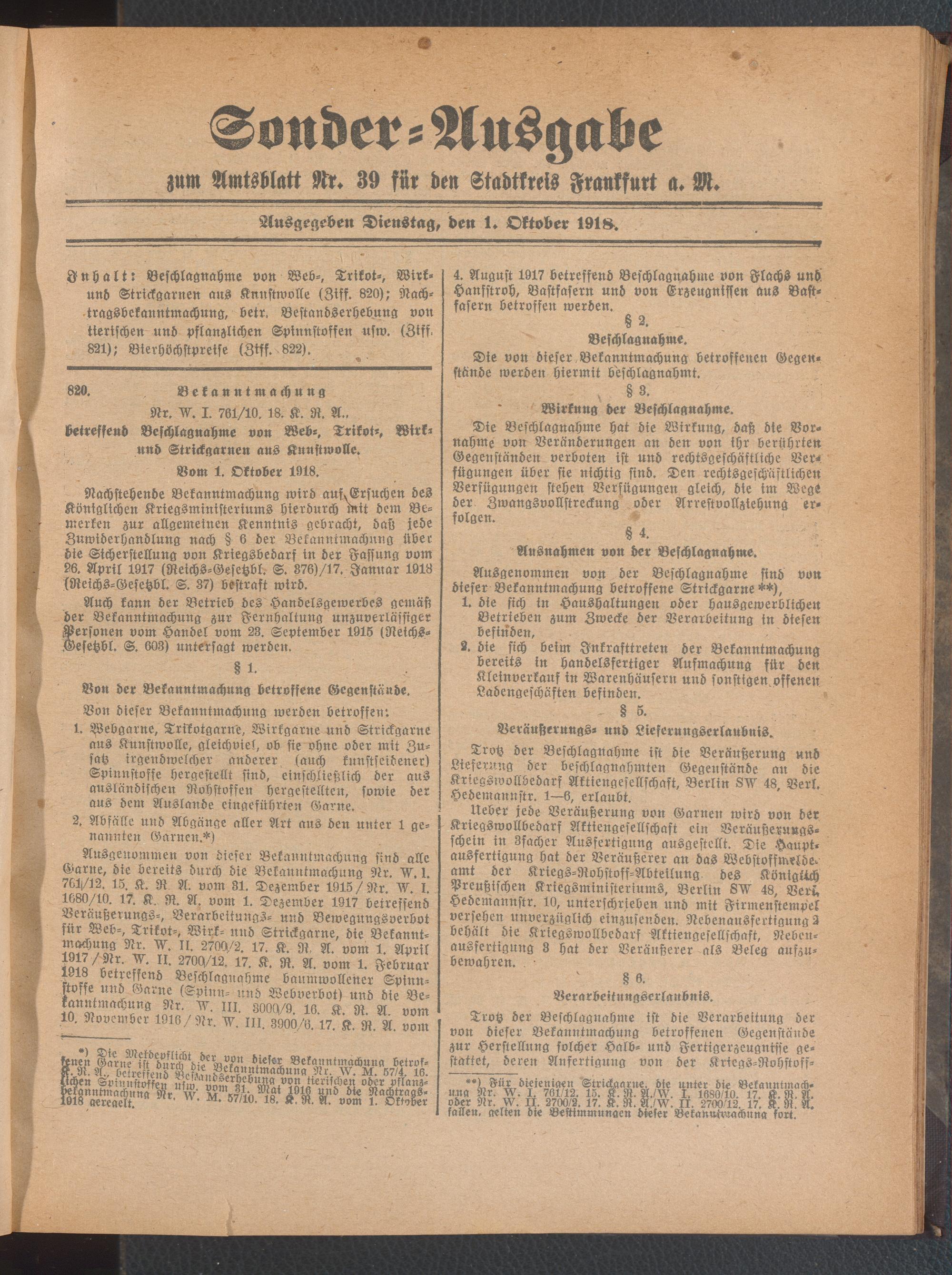 01.10.1918 = Sonder-Ausgabe zu Nr.39