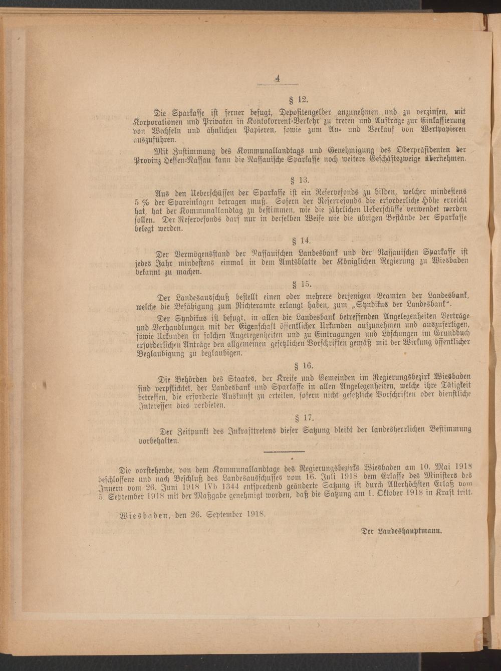 05.10.1918 = Beilage zu Nr. 40. Satzung der Nassauischen Landesbank und der Nassauischen Sparkasse