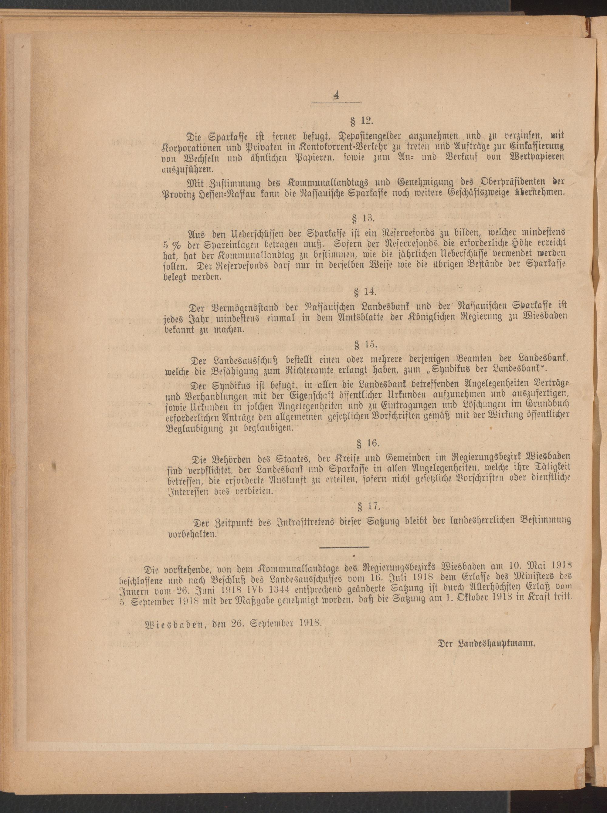 05.10.1918 = Beilage zu Nr. 40. Satzung der Nassauischen Landesbank und der Nassauischen...