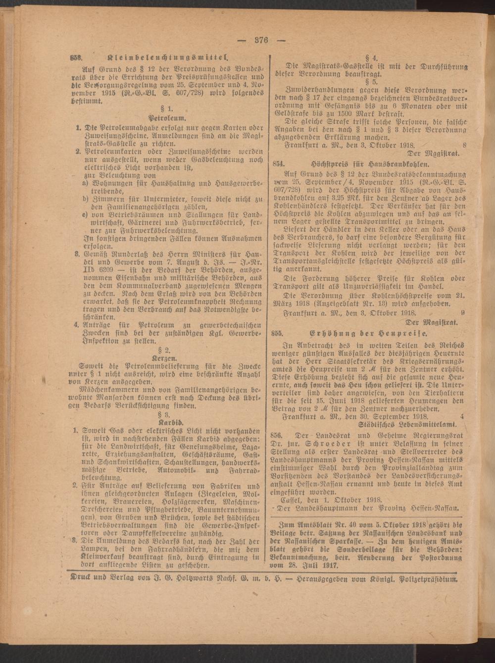 Amtsblatt für den Stadtkreis Frankfurt a.M.. 1828-1918