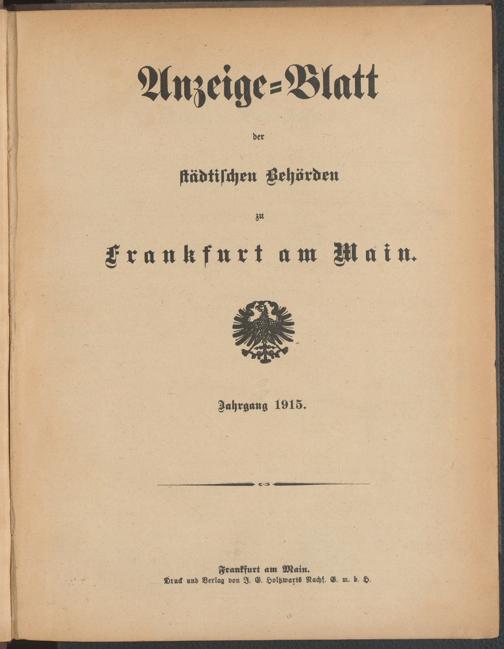 Anzeigeblatt der Städtischen Behörden zu Frankfurt am Main