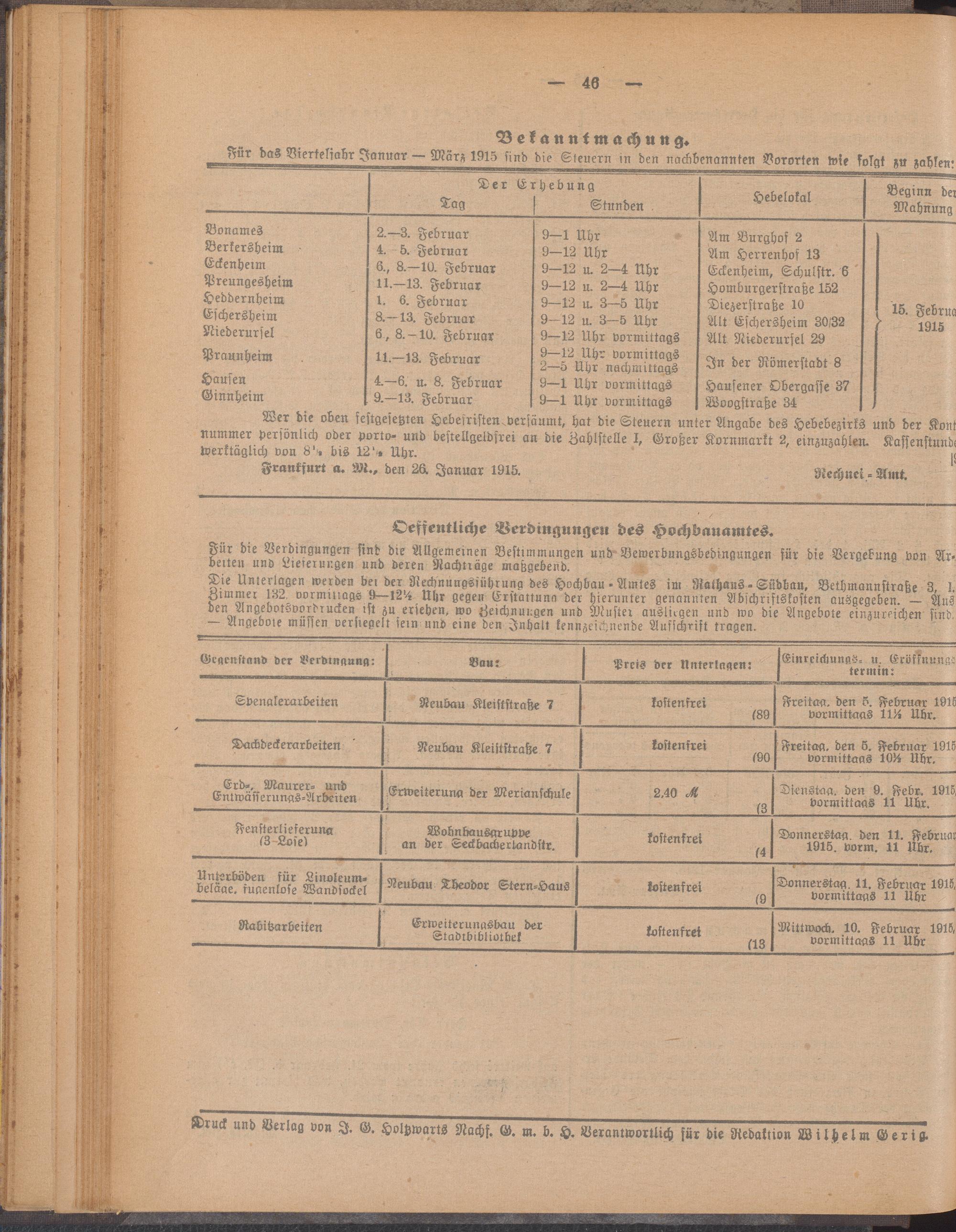 Anzeigeblatt der Städtischen Behörden zu Frankfurt am Main