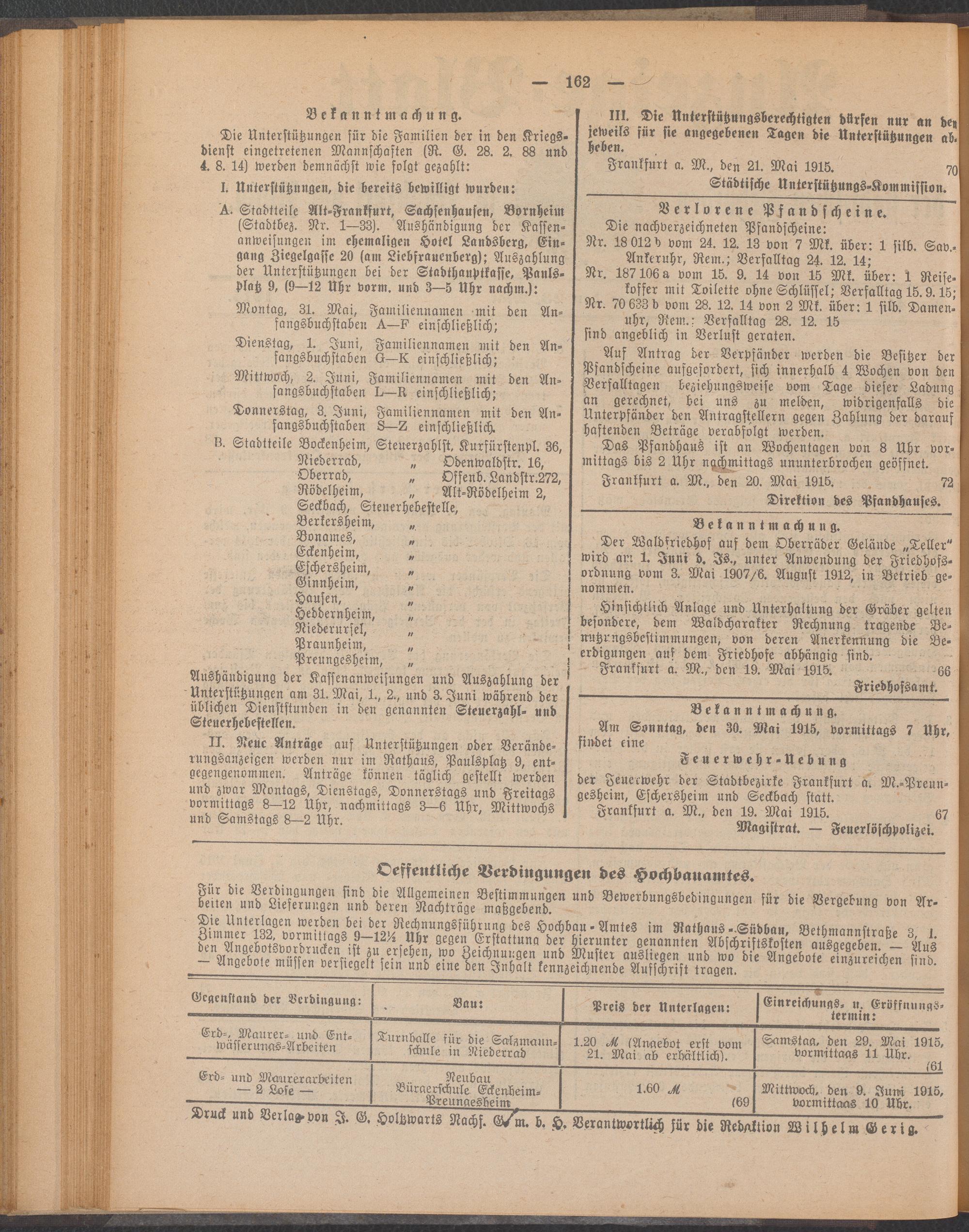Anzeigeblatt der Städtischen Behörden zu Frankfurt am Main