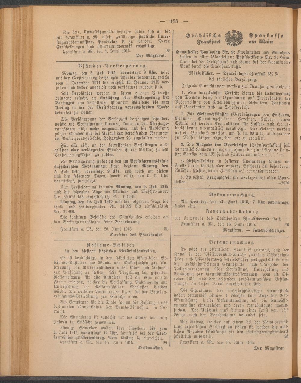 Anzeigeblatt der Städtischen Behörden zu Frankfurt am Main