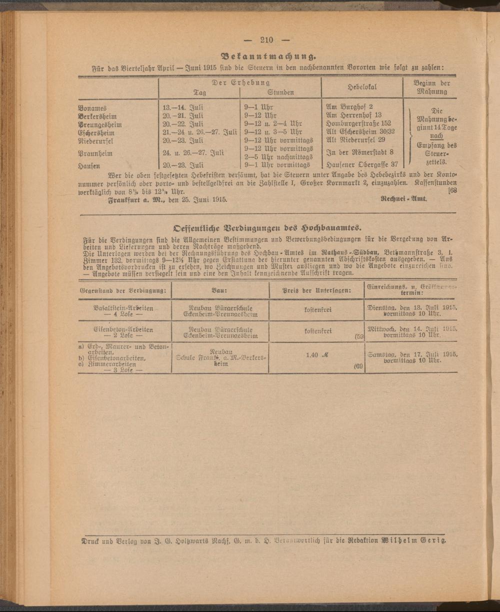 Anzeigeblatt der Städtischen Behörden zu Frankfurt am Main
