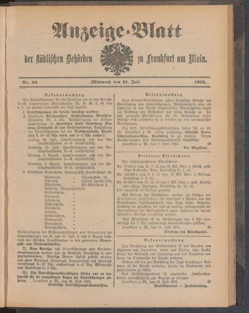 Anzeigeblatt der Städtischen Behörden zu Frankfurt am Main