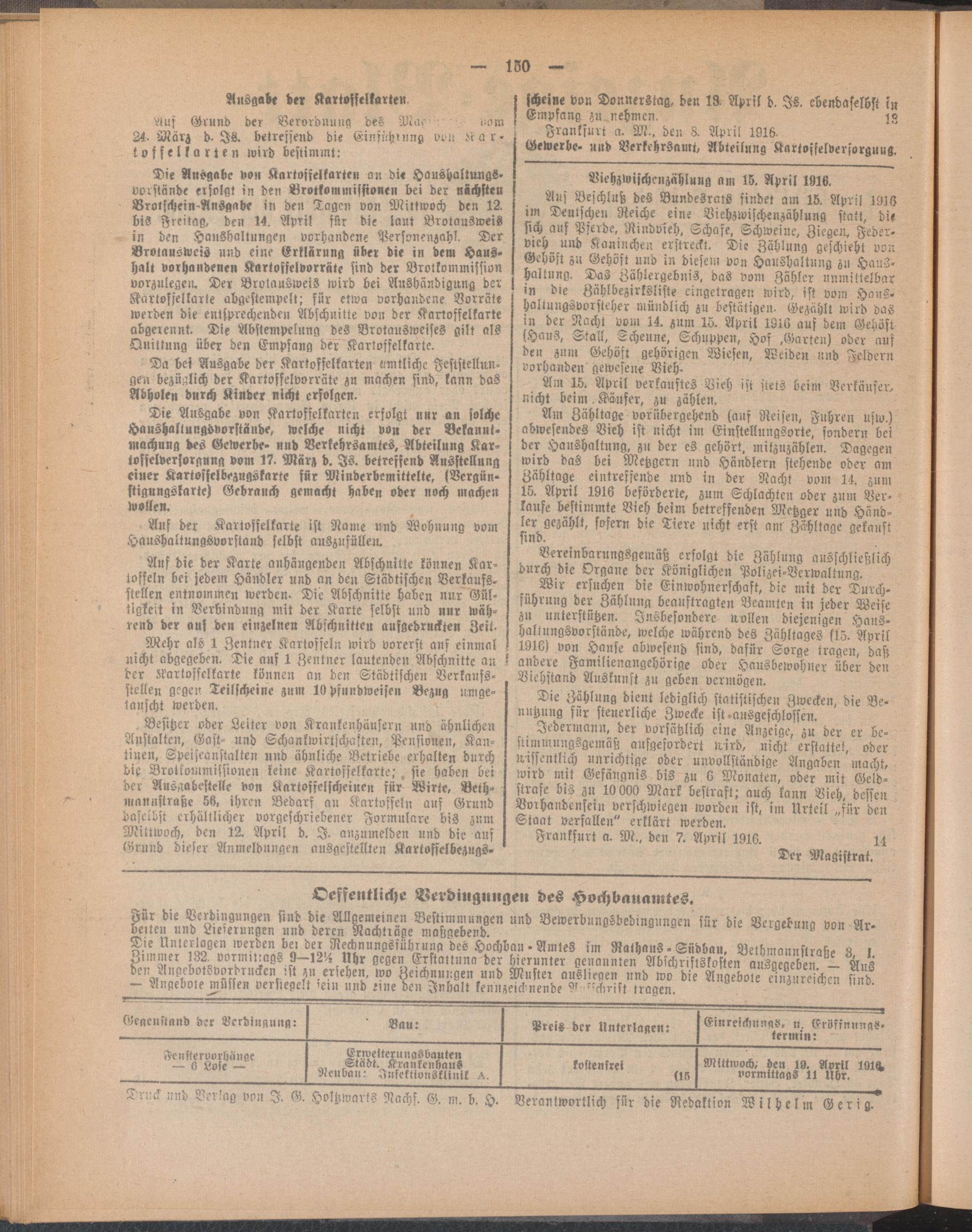 Anzeigeblatt der Städtischen Behörden zu Frankfurt am Main