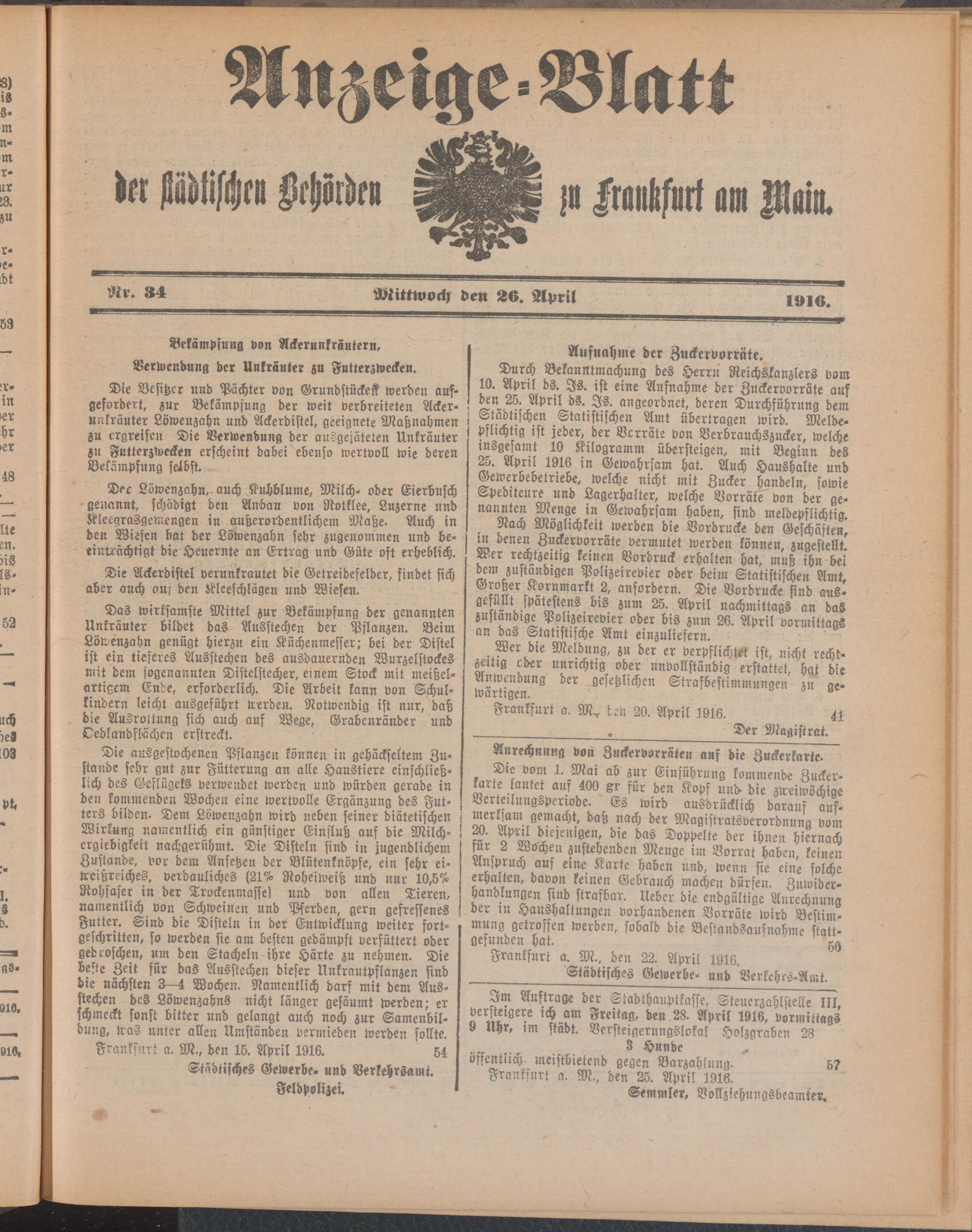 Anzeigeblatt der Städtischen Behörden zu Frankfurt am Main