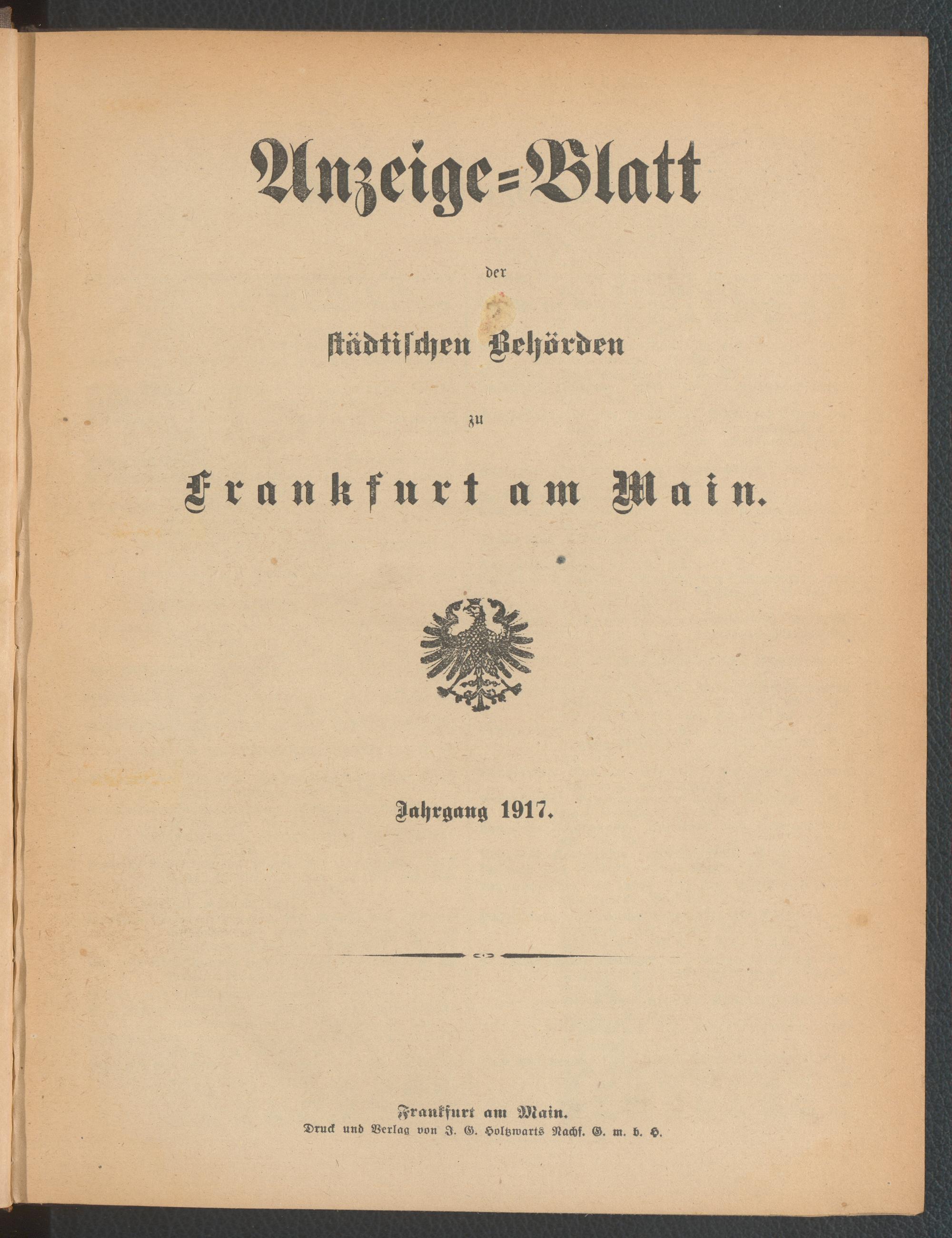 Anzeigeblatt der Städtischen Behörden zu Frankfurt am Main