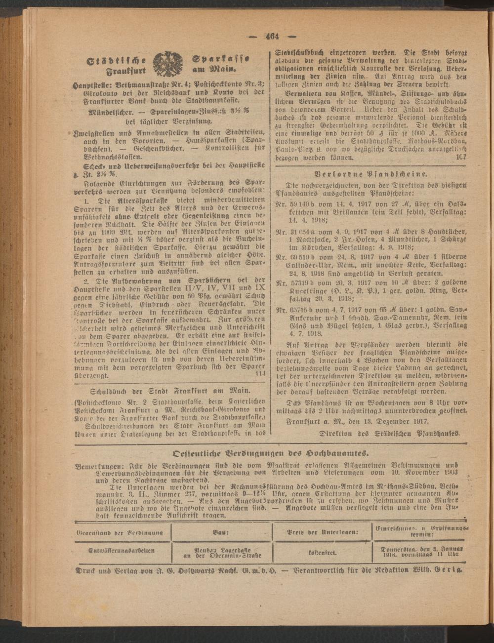 Anzeigeblatt der Städtischen Behörden zu Frankfurt am Main