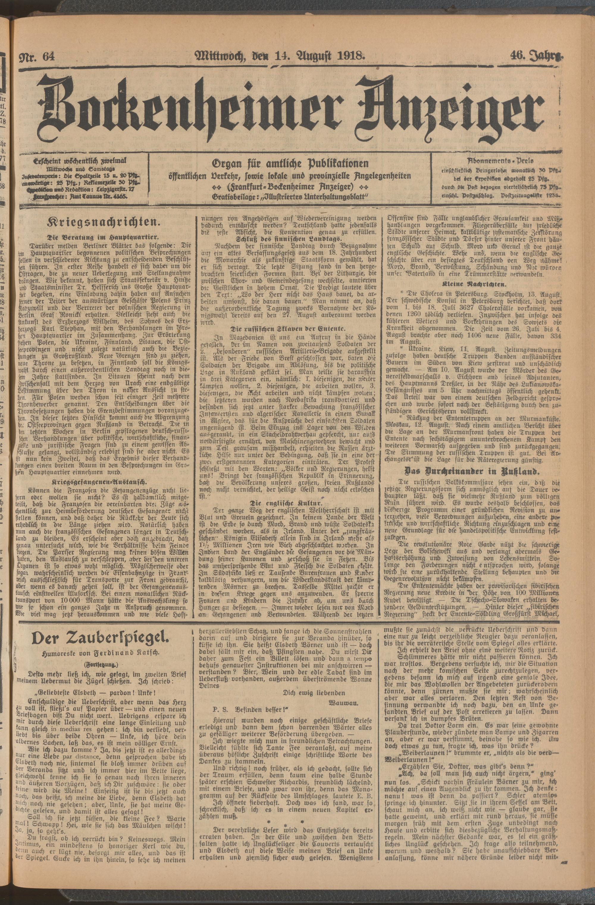 1918 = 46. Jahrgang