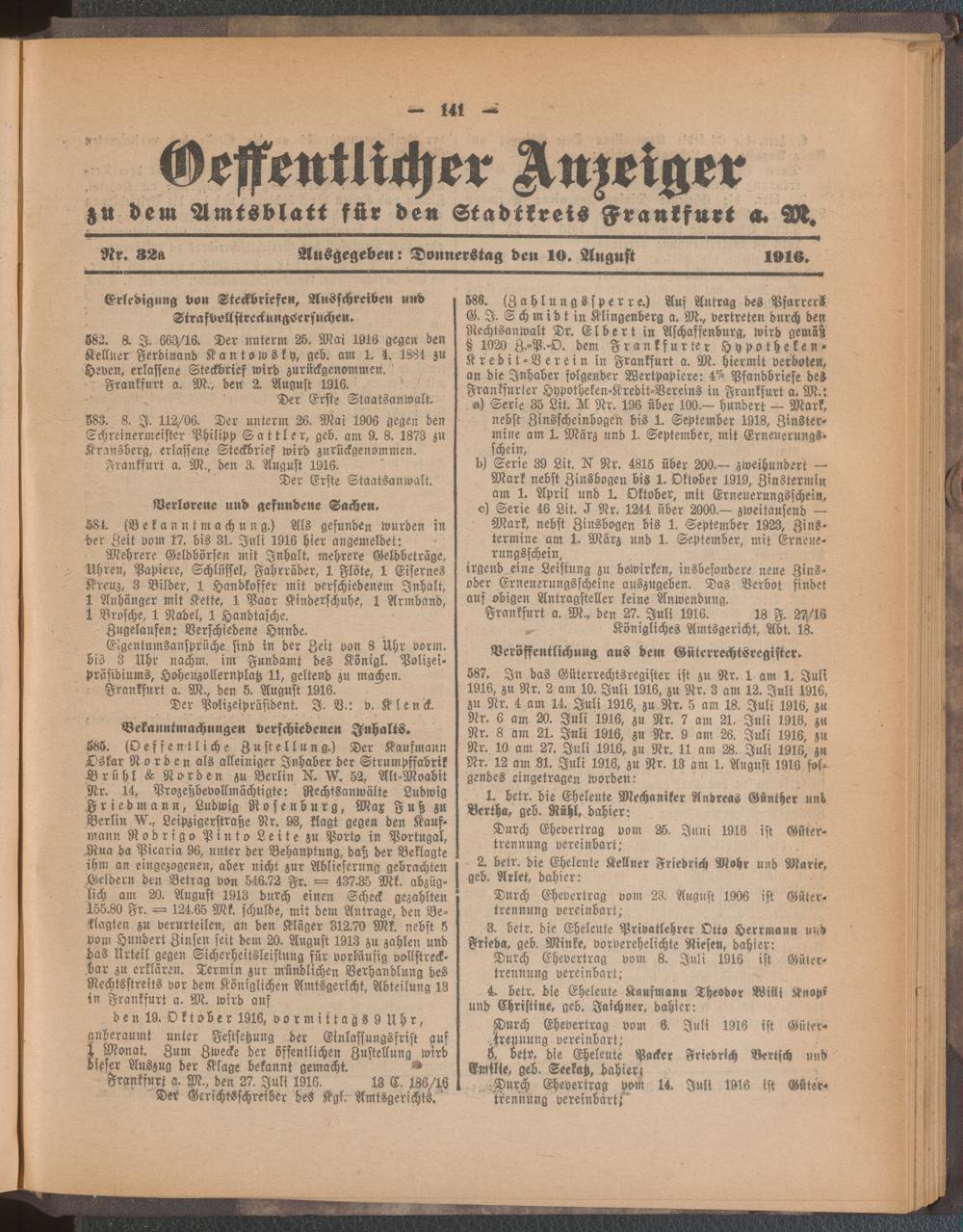 10.08.1916 = Nr. 32 a
