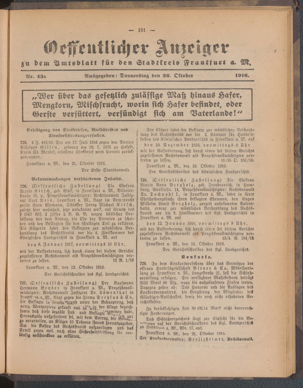 26.10.1916 = Nr. 43 a
