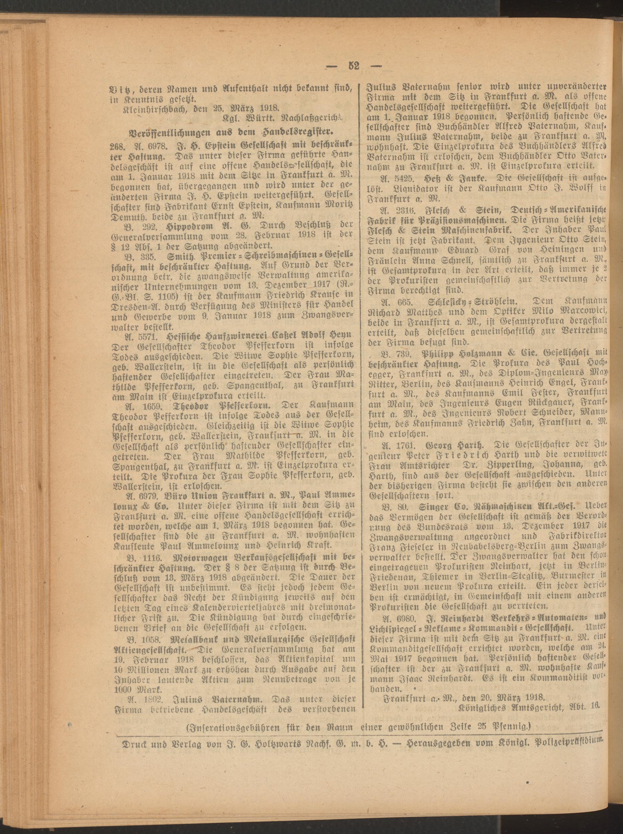 1918 = 50. Jahrgang