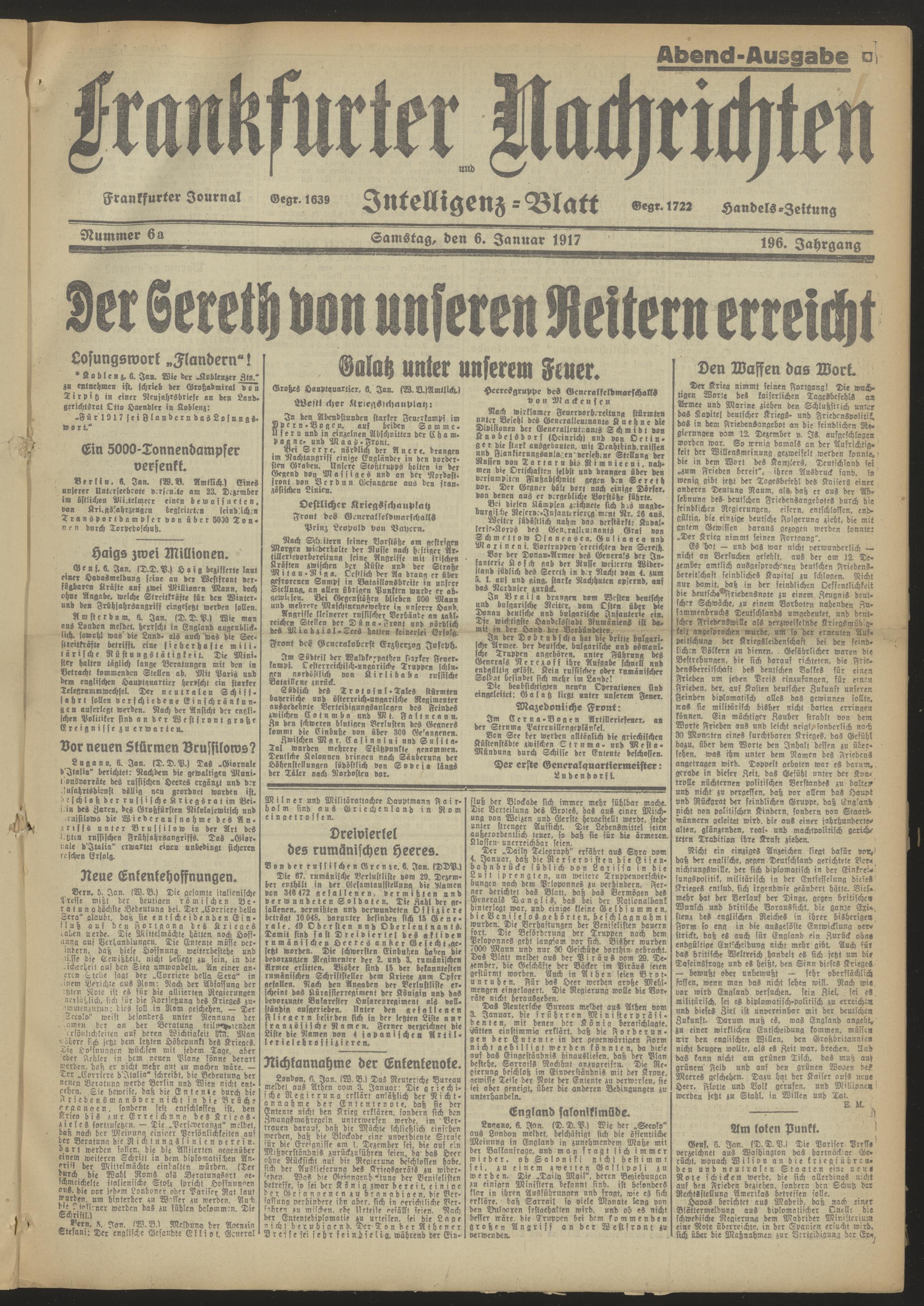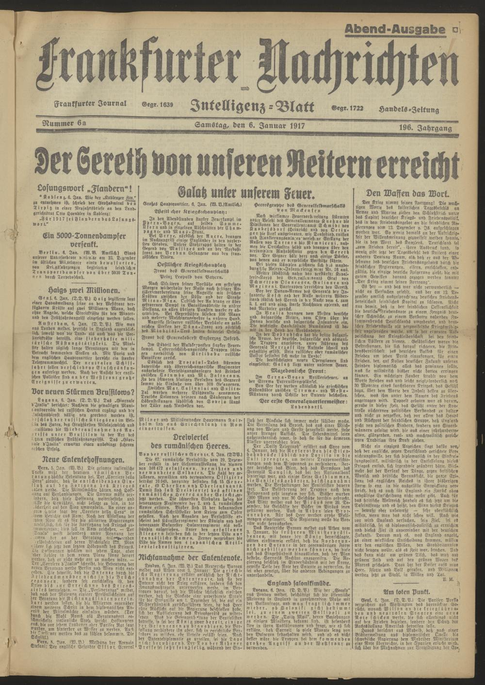 06.01.1917 Abend-Ausgabe = Nr. 6 a
