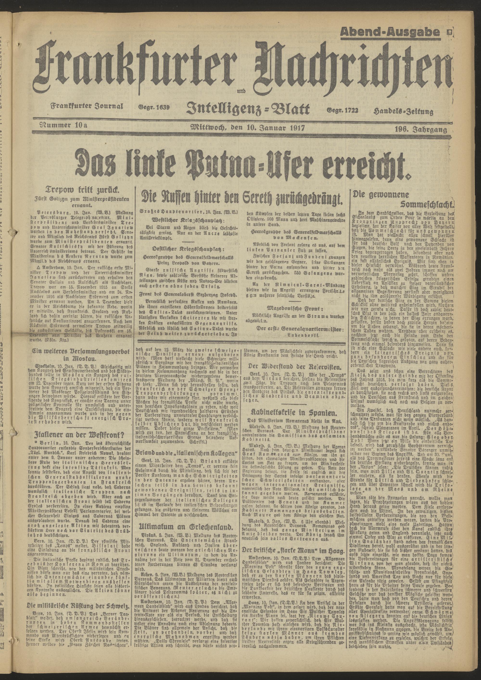 10.01.1917 Abend-Ausgabe = Nr. 10 a