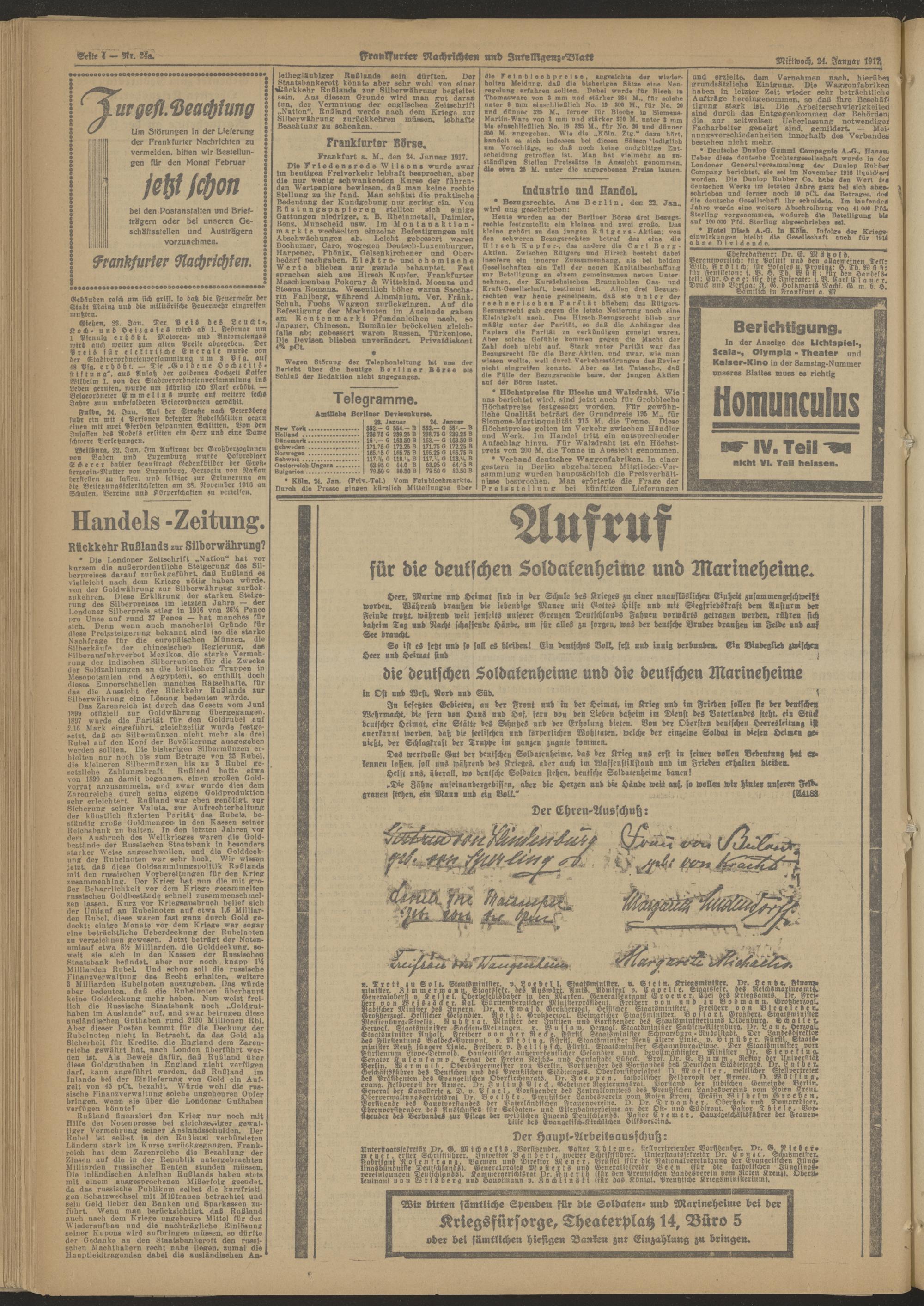 24.01.1917 Abend-Ausgabe = Nr. 24 a