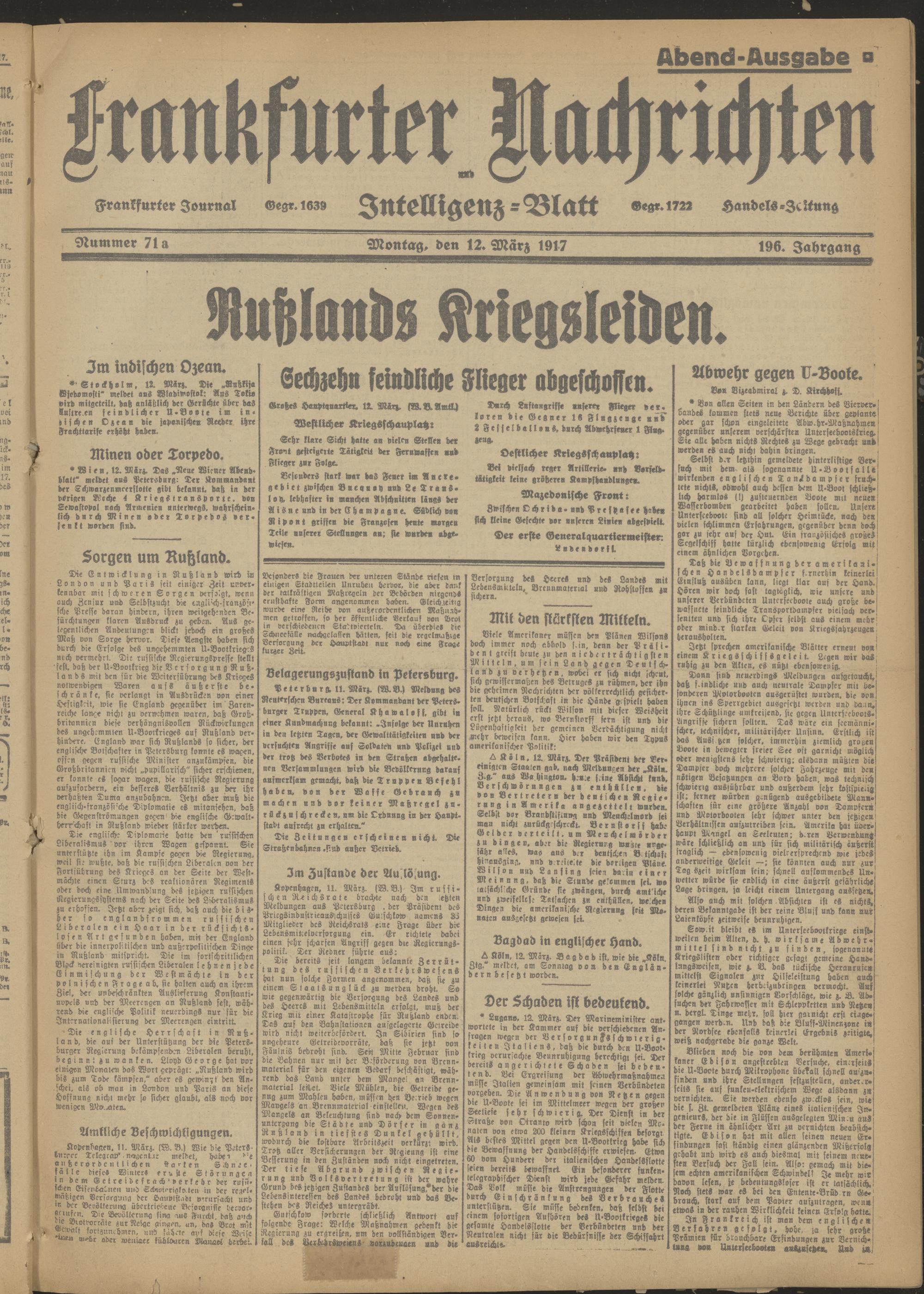 12.03.1917 Abend-Ausgabe = Nr. 71 a