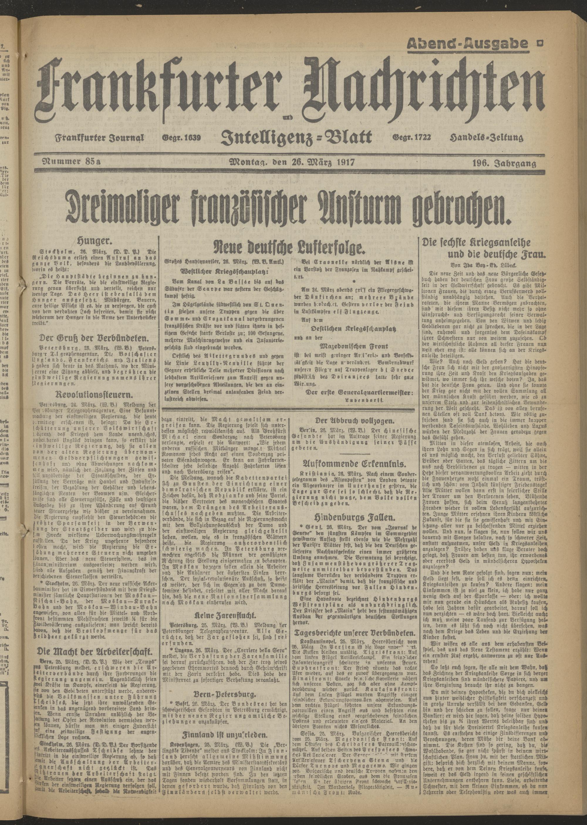 26.03.1917 Abend-Ausgabe = Nr. 85 a