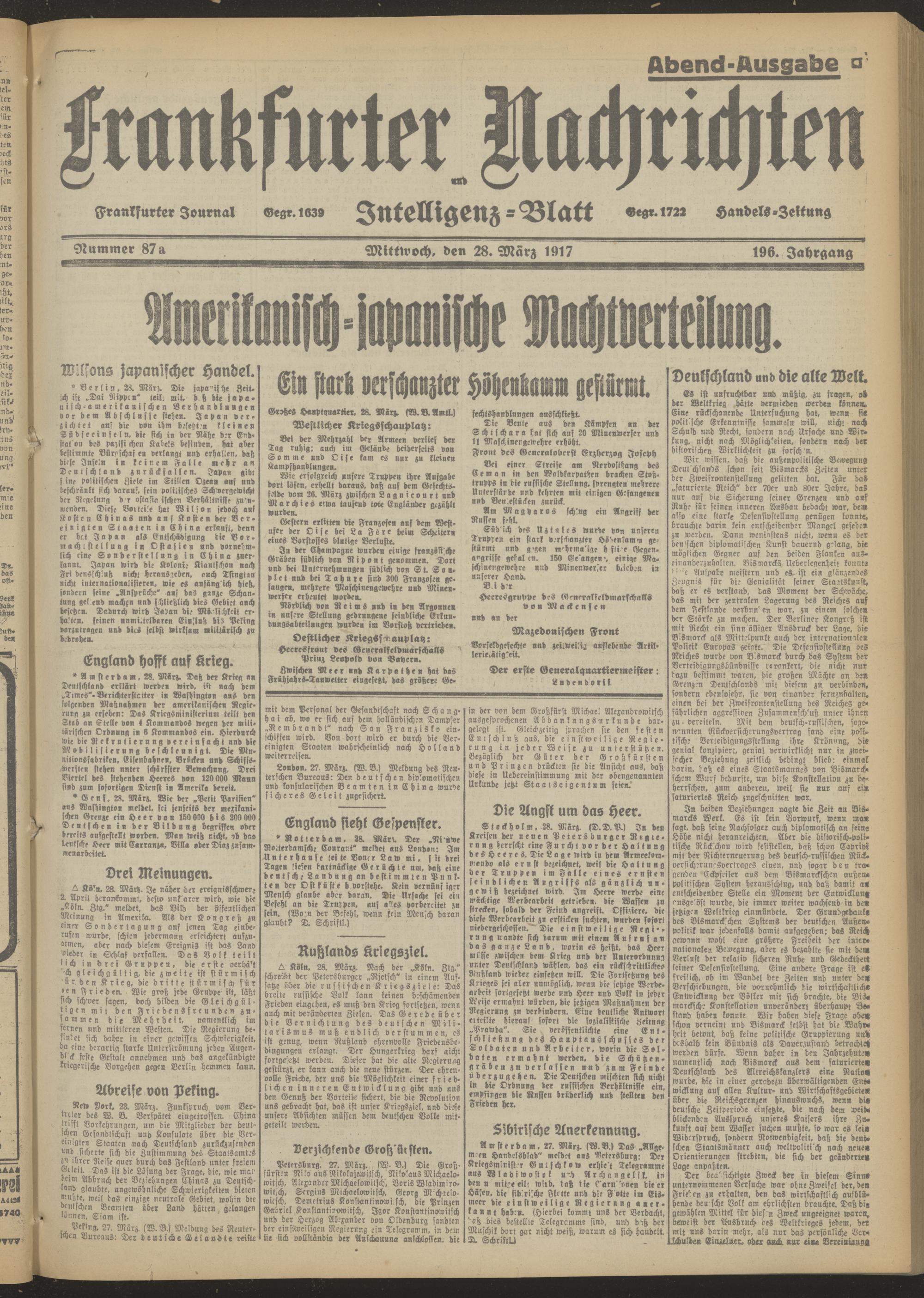 28.03.1917 Abend-Ausgabe = Nr. 87 a