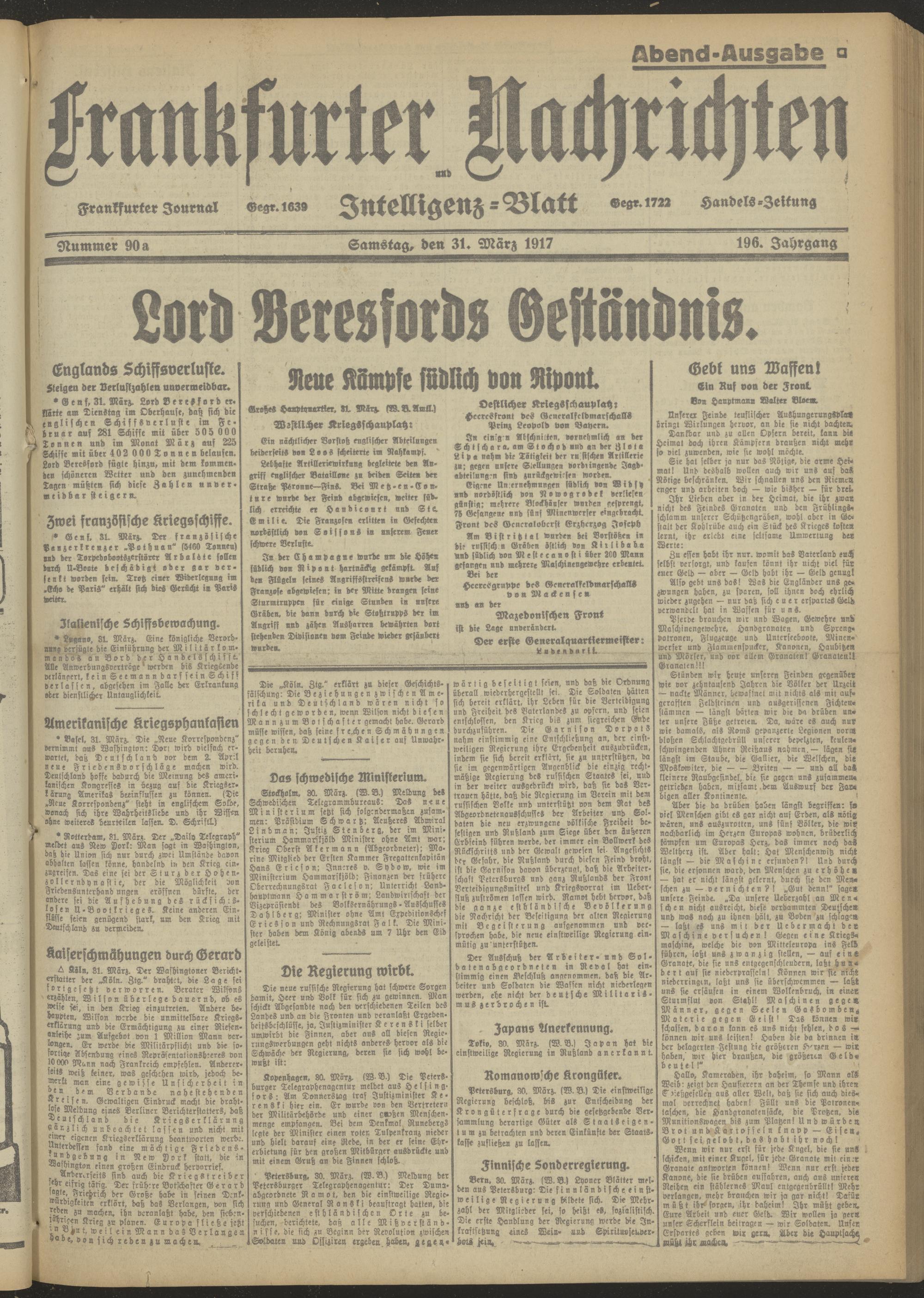 31.03.1917 Abend-Ausgabe = Nr. 90 a
