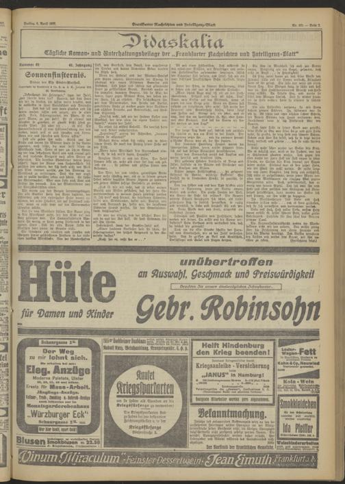 Frankfurter Nachrichten und Intelligenzblatt. 1914-1918