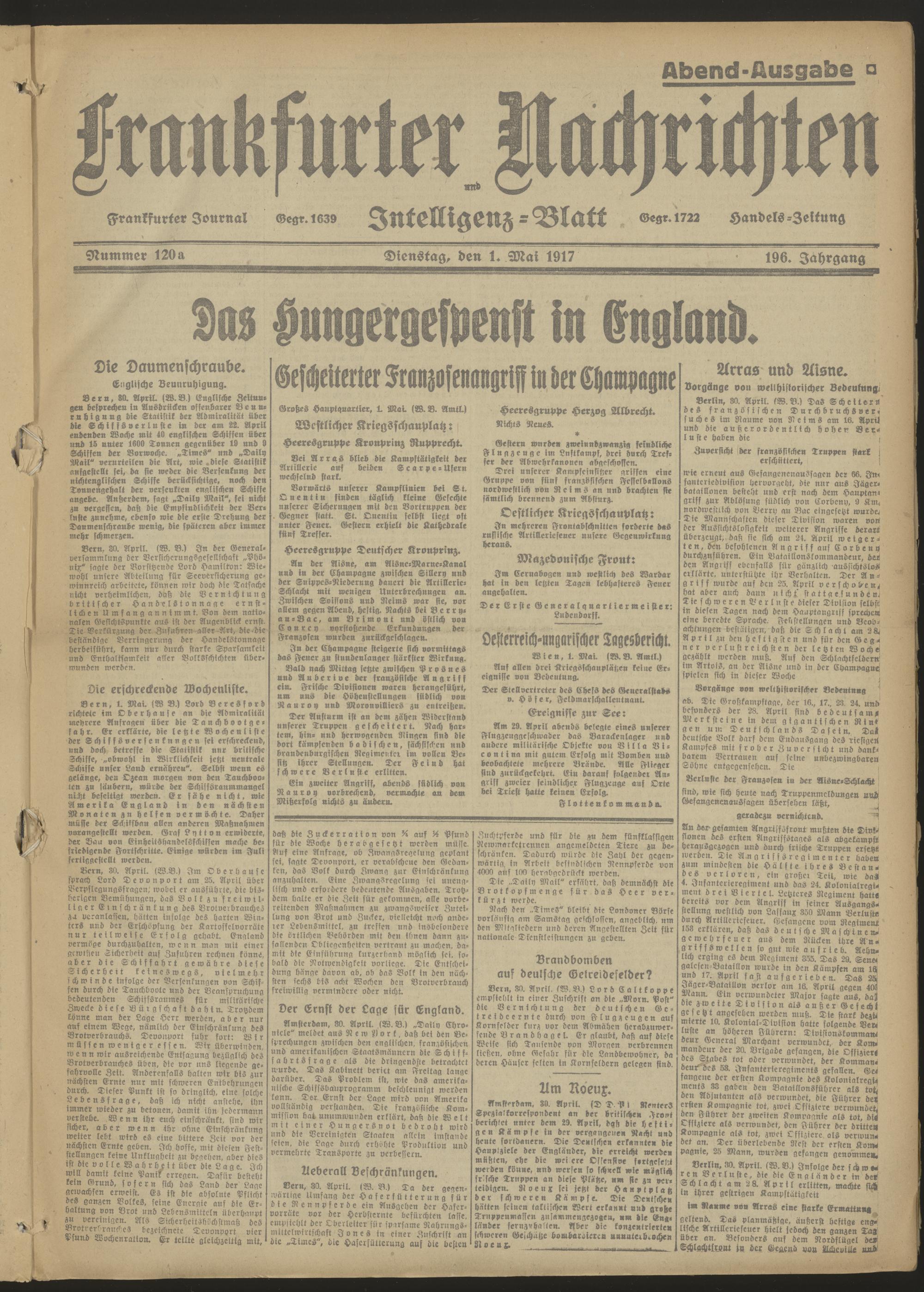 01.05.1917 Abend-Ausgabe = Nr. 120 a