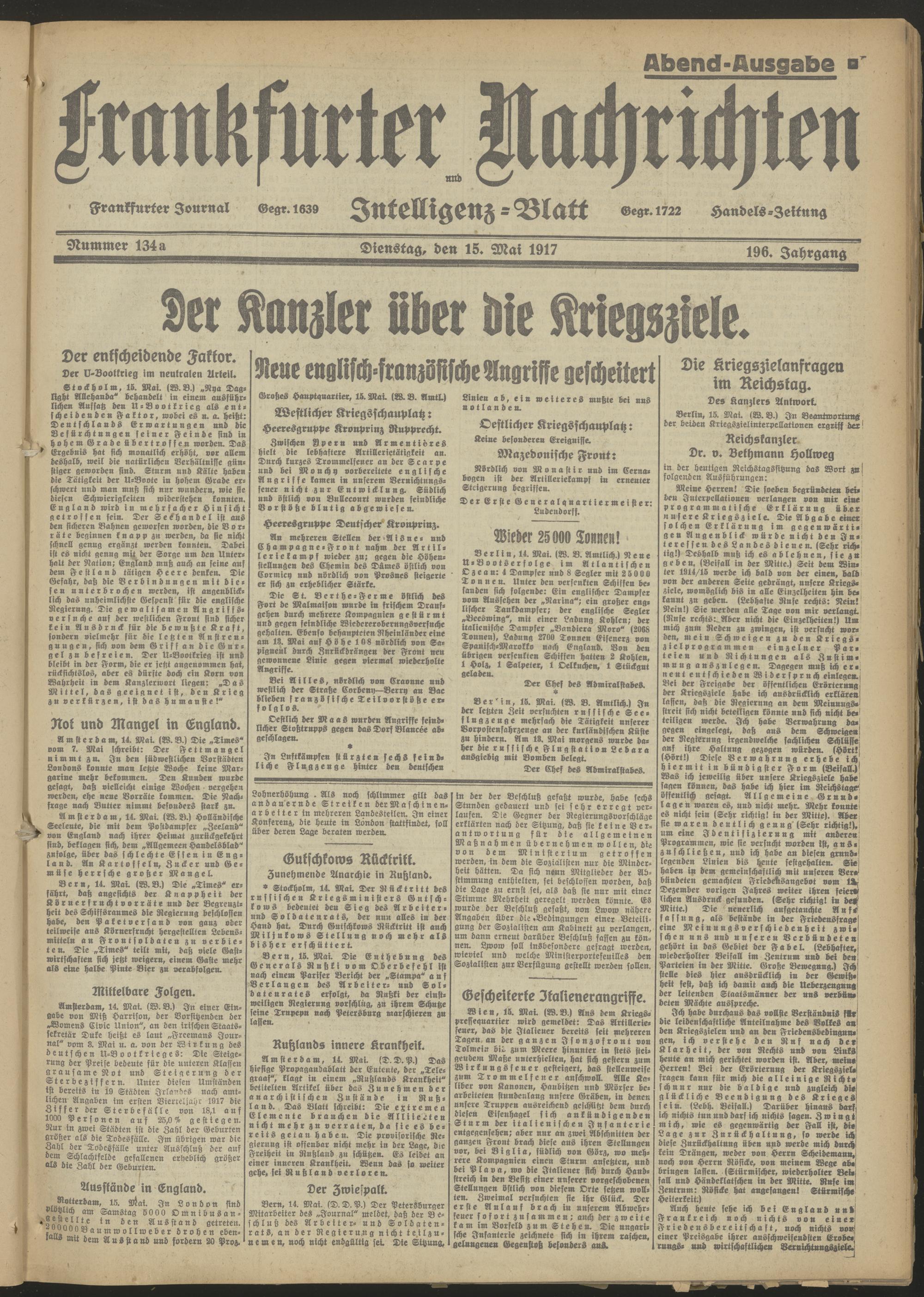 15.05.1917 Abend-Ausgabe = Nr. 134 a