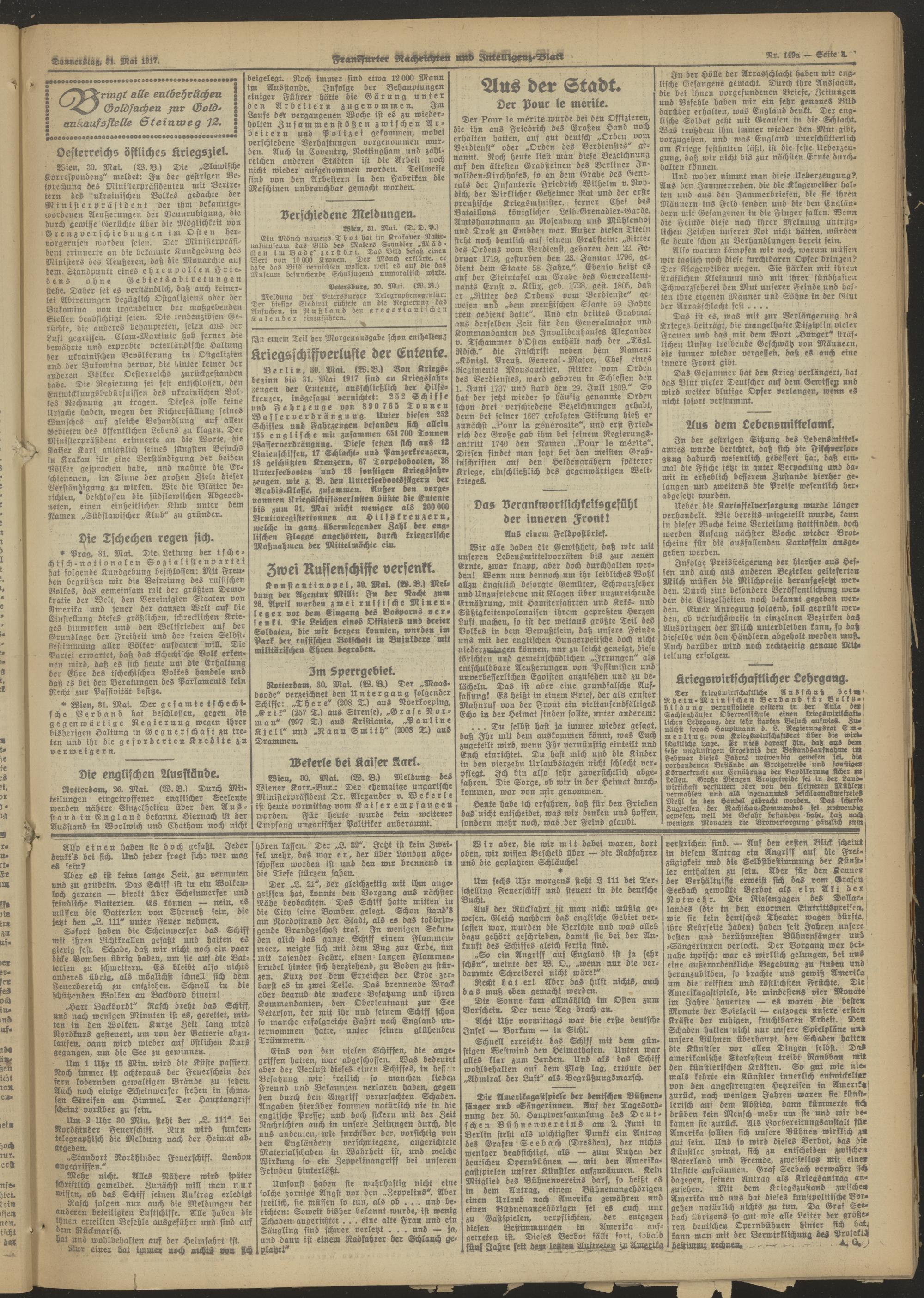 31.05.1917 Abend-Ausgabe = Nr. 149 a