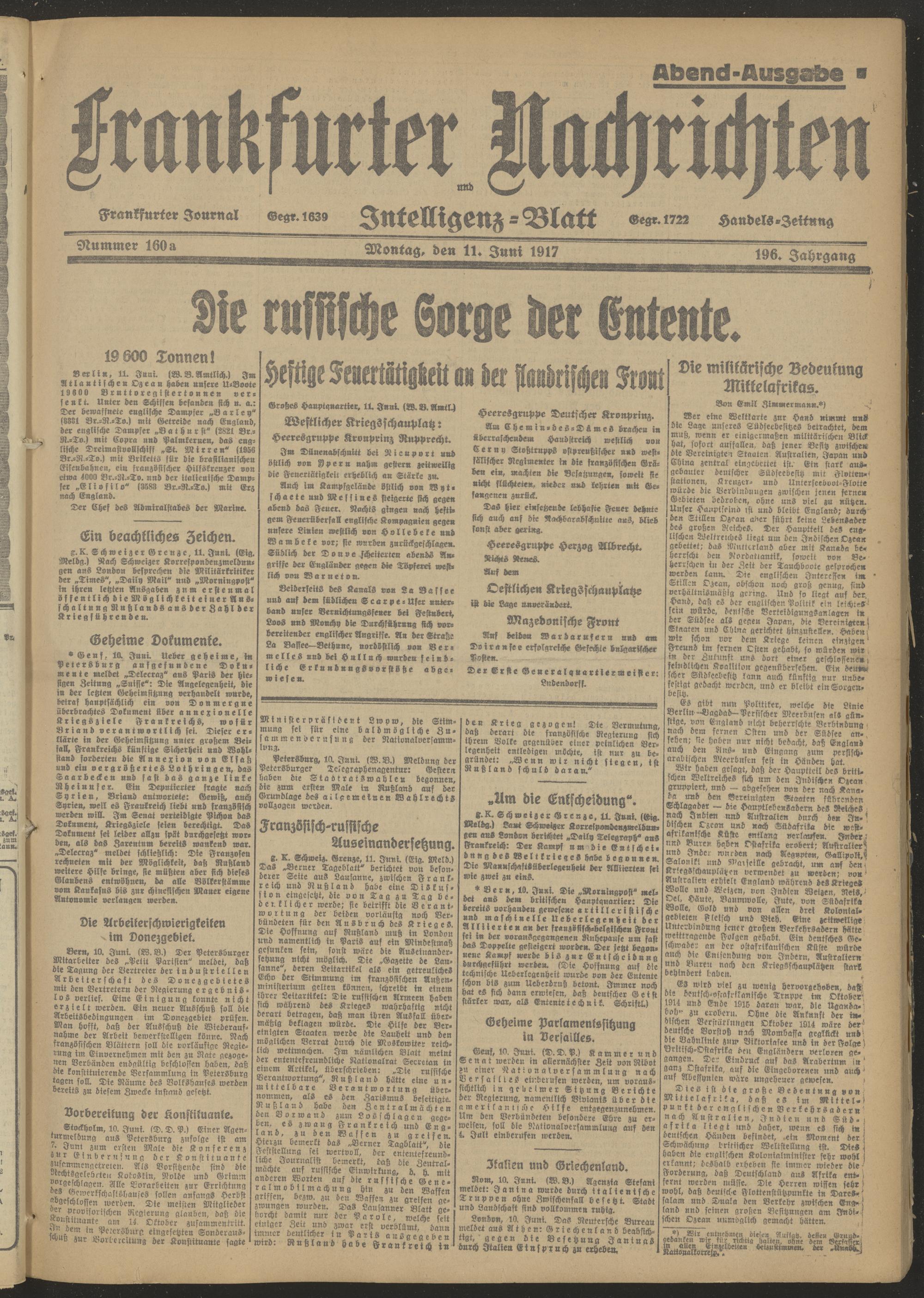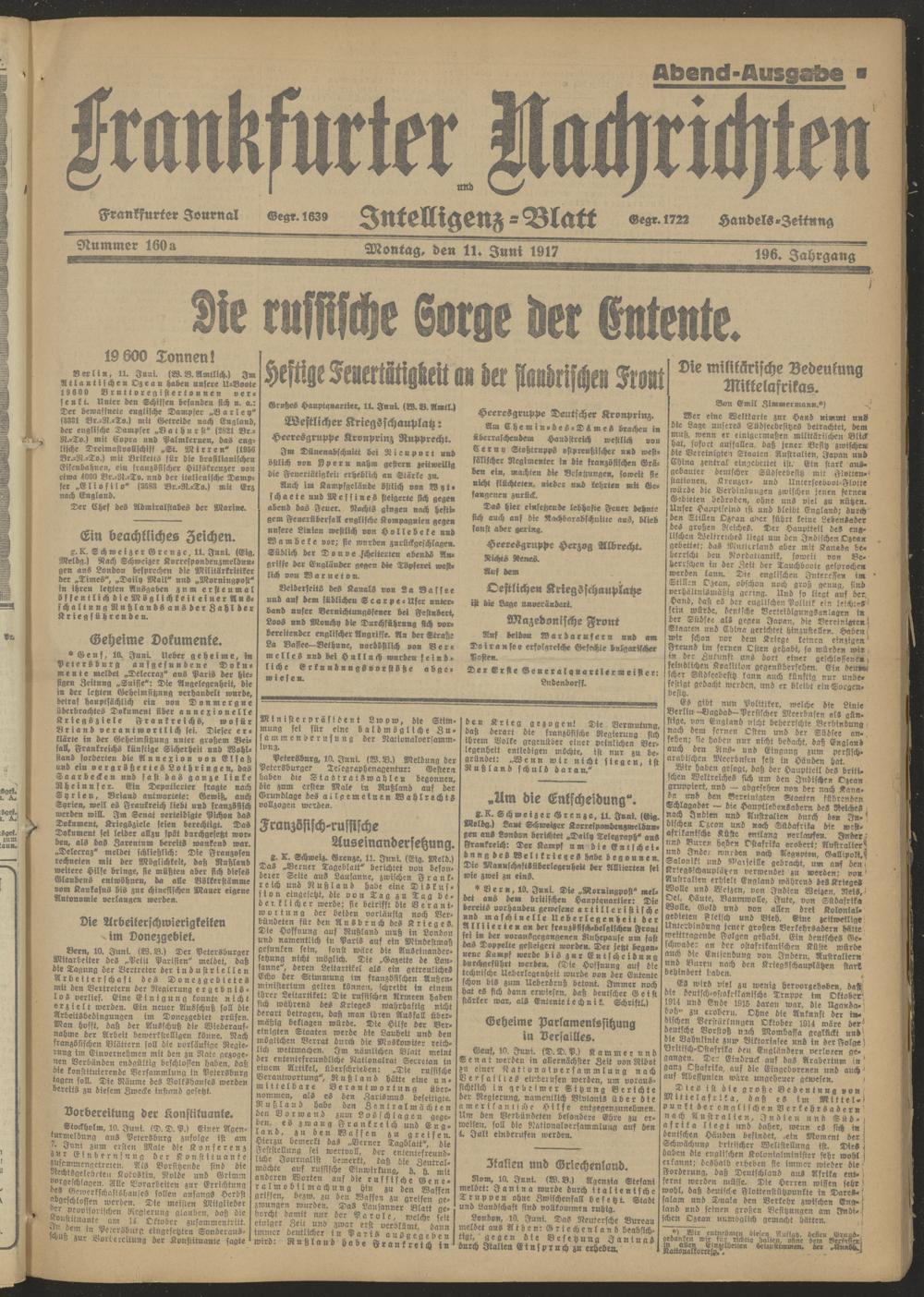 11.06.1917 Abend-Ausgabe = Nr. 160 a