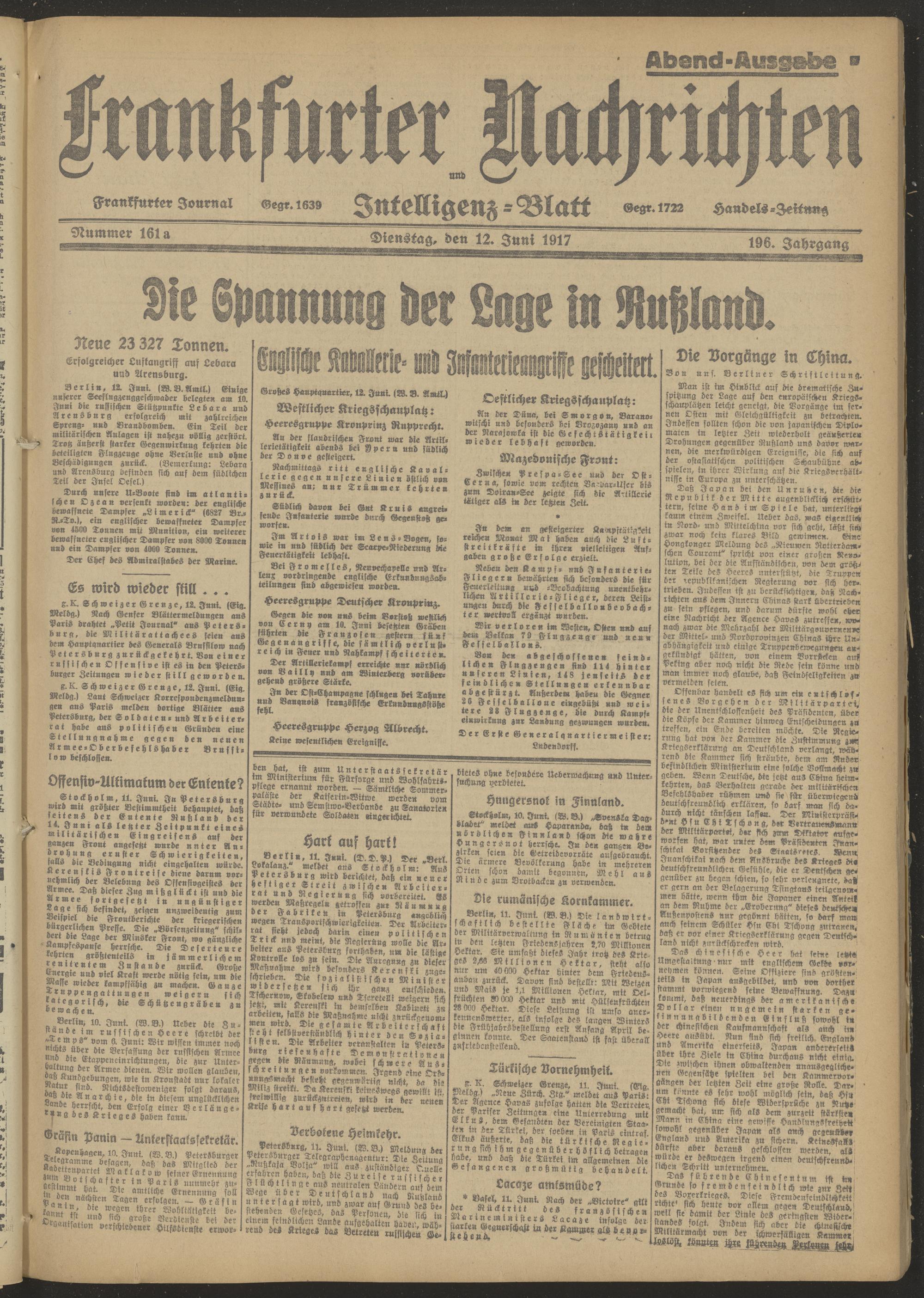 12.06.1917 Abend-Ausgabe = Nr. 161 a