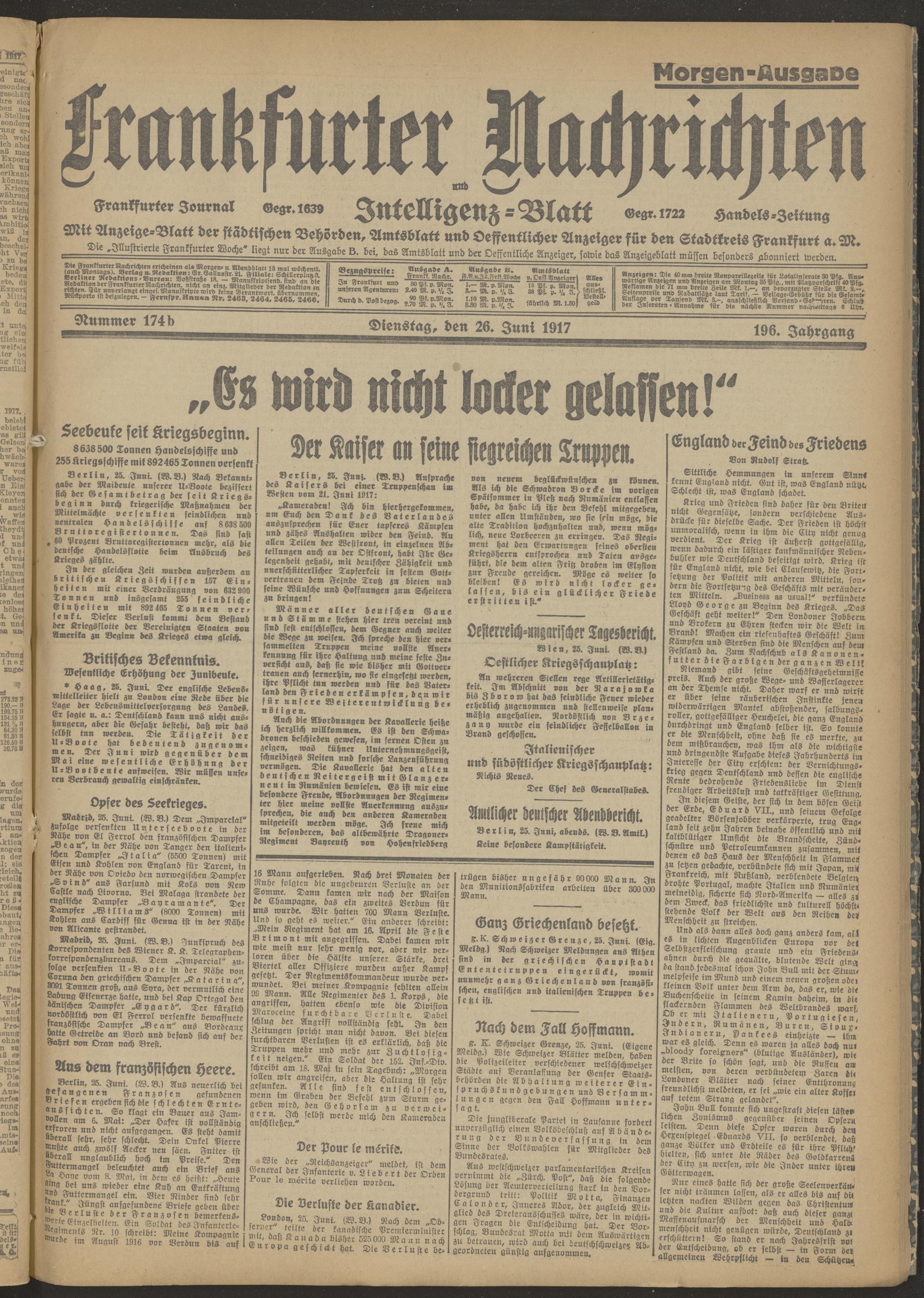 26.06.1917 Morgen-Ausgabe = Nr. 174 b