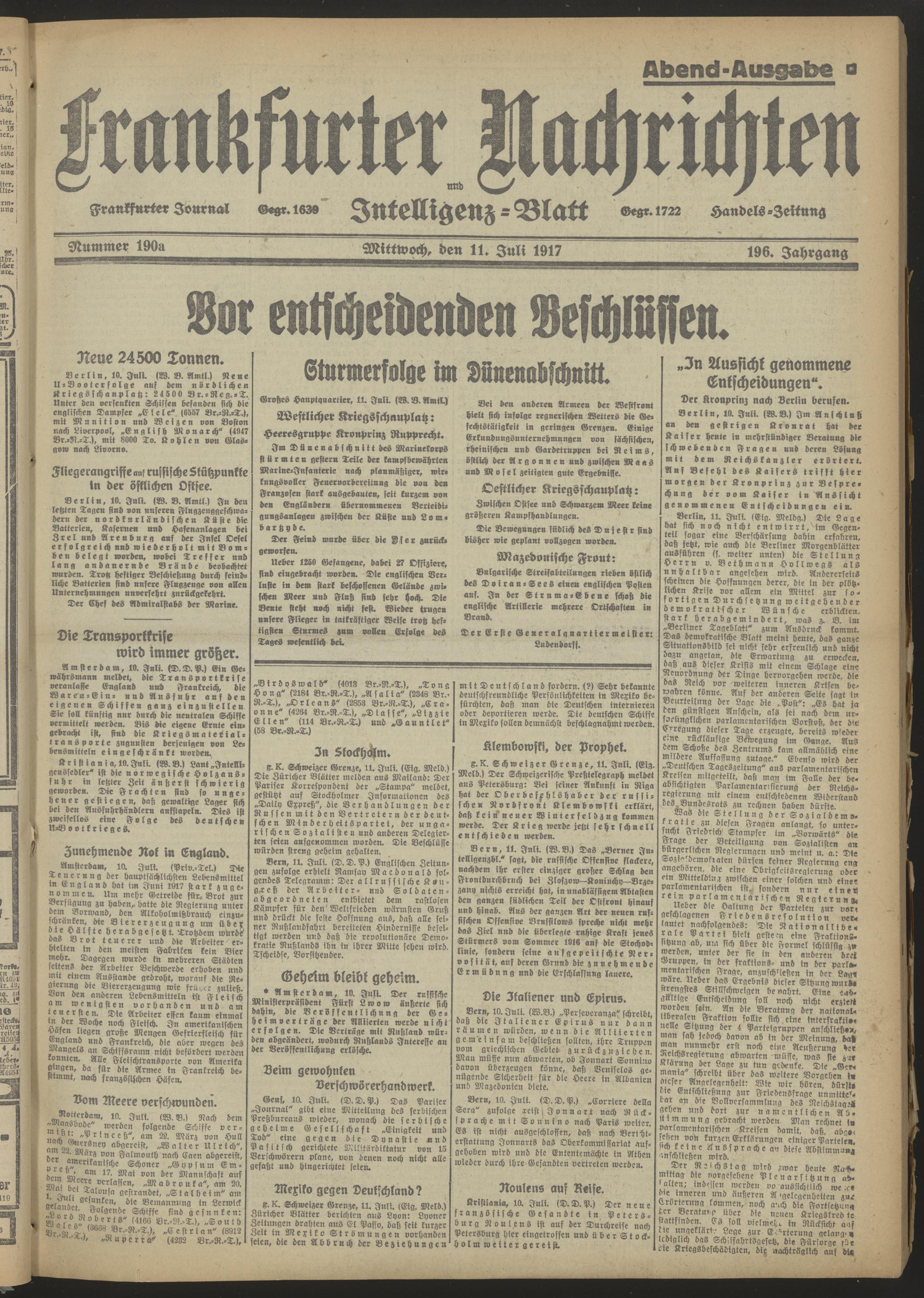 11.07.1917 Abend-Ausgabe = Nr. 190 a
