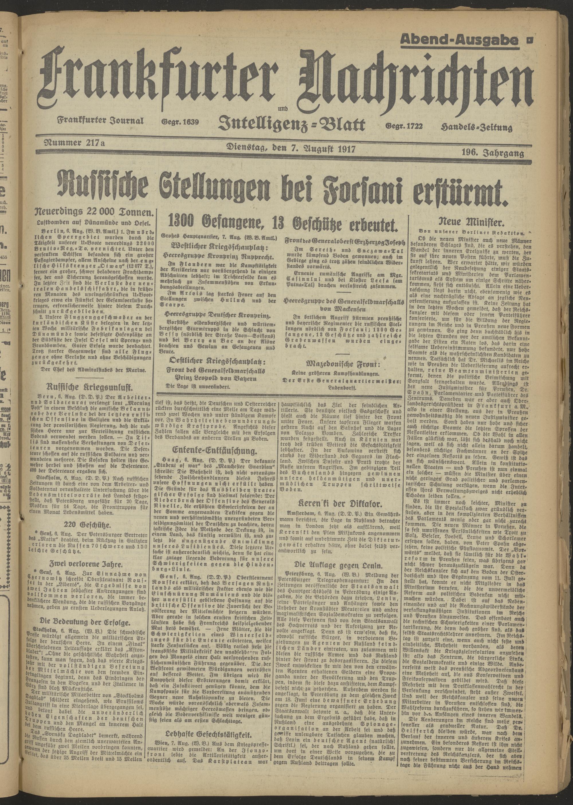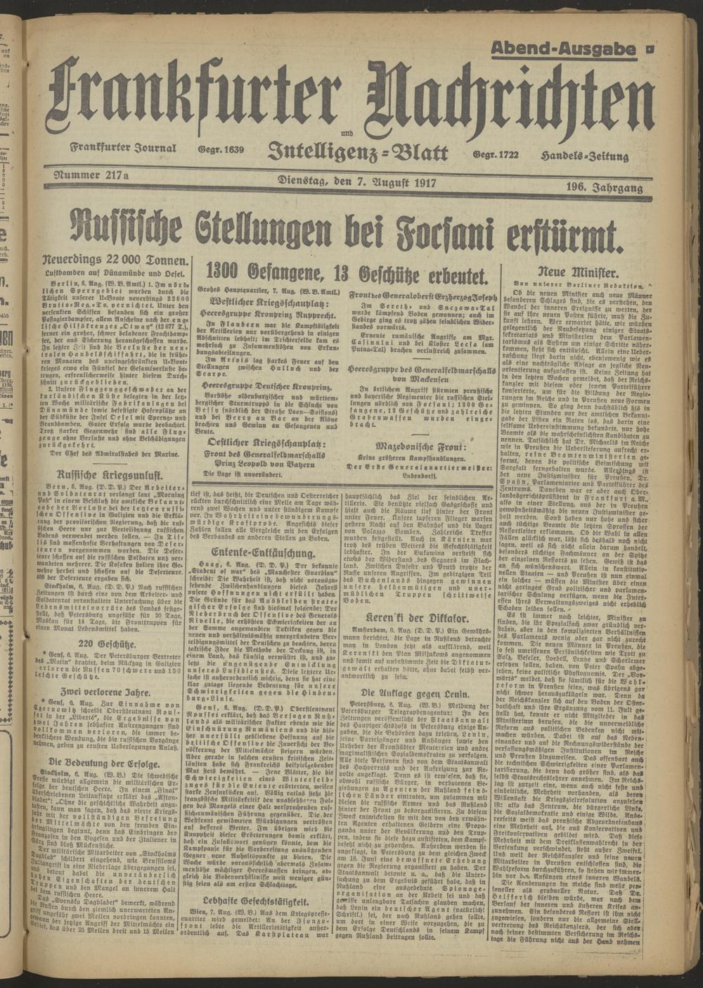 07.08.1917 Abend-Ausgabe = Nr. 217 a